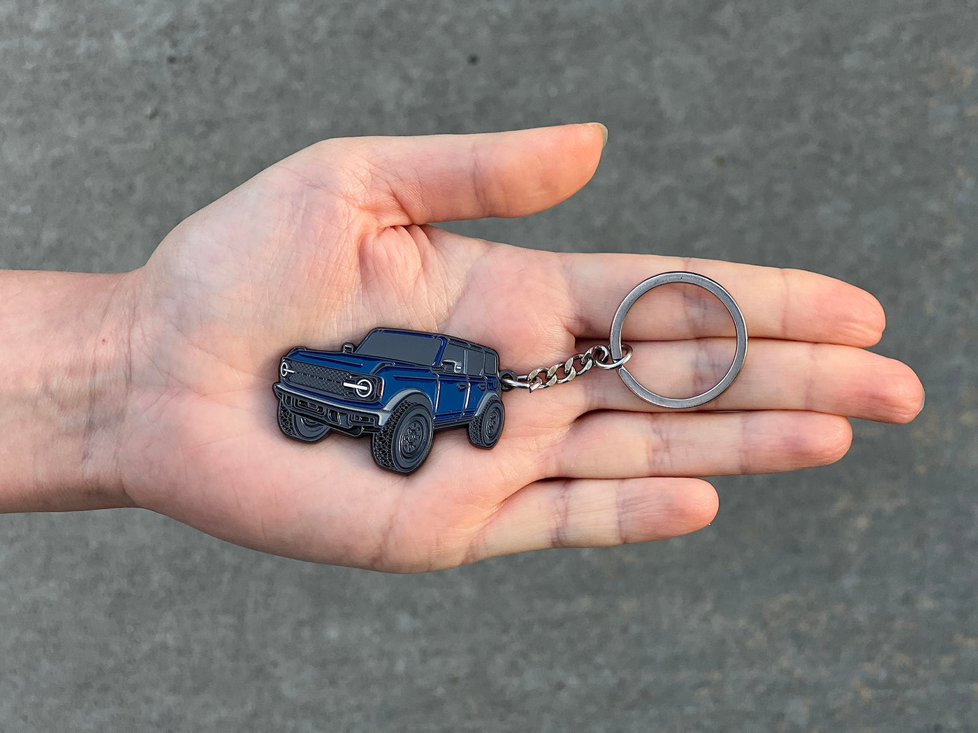 Q: What materials are used in the Bronco Keychain?A: The Bronco Keychain is made from sturdy metal and enamel, ensuring durability while remaining lightweight. This combination provides a quality feel with raised details that are pleasing to the touch.