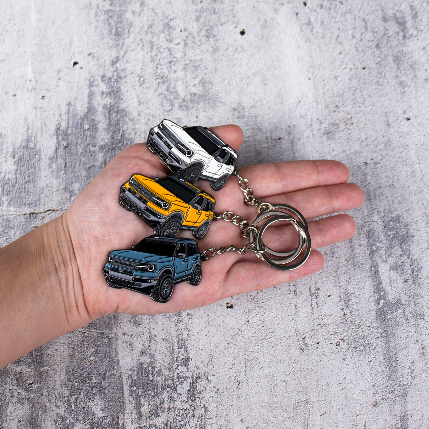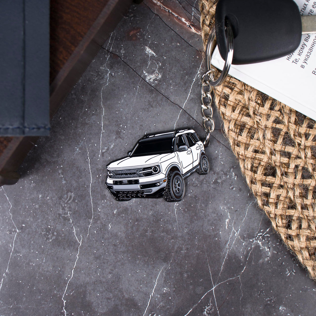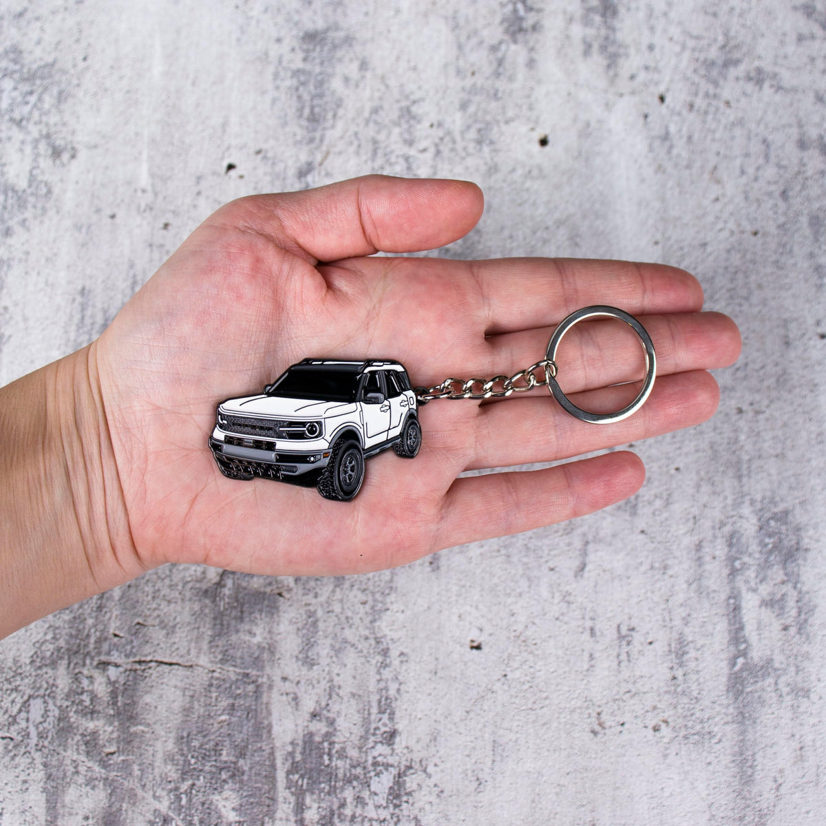 BRONCO SPORT ACCESSORIES 2023 Our Bronco keychain is a great addition to your Bronco acessories - Bronco mods, Bronco accessories interior, Bronco Sticker Bronco decals, emblem, letters, key fob cover, stickers, license plate, Bronco toy car and Bronco diecast. VARIOUS COLORS KEYCHAINS that fit every model color: - Carbonized Gray- Red- White- Cactus Gray / Silver- Green- Black- Cyber Orange- Silver- Blue- Antimatter Blue- Area 51 GREAT SIZE: 2" x 1.3" and wights less than 1 oz. Bronco TOY CAR That goes with many models: Outer banks, black diamond, big bend, heritage, badlands, everglades, wildtrak, raptor and more 2024, 2023, 2022, 2021, 2020. MATERIAL: metal/enamel. Very sturdy but lightweight. PERFECT GIFT for any Bronco owner. DETAILED COPYRIGHTED DESIGN by our talented artist.