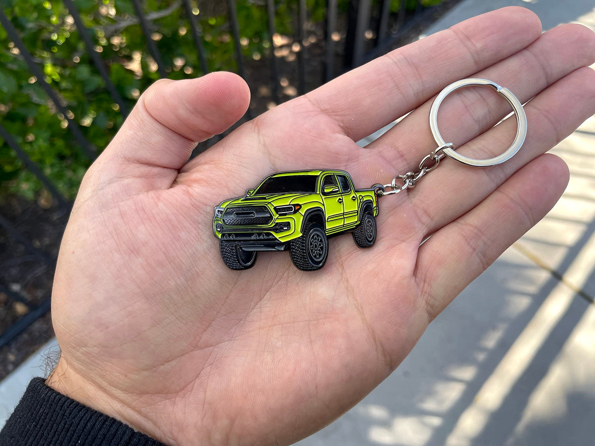 TACOMA ACCESSORIES Our Tacoma keychain is a great addition to your Tacoma acessories - Tacoma mods, Tacoma accessories interior, Tacoma Sticker Tacoma decals. VARIOUS COLORS KEYCHAINS that fit every model color: - Tacoma Quicksand- Tacoma Inferno Red- Tacoma White- Tacoma Army Green- Tacoma Black- Tacoma Magnetic Gray- Silver- Blue- Lunar Rock GREAT SIZE2" x 1.3" and wights less than 1 oz. TACOMA TOY TRUCKThat goes with many tacoma models: PRO, Sport, Off Road, 3rd gen Tacoma, Tacoma 2023, 2022, 2021, 2020, 2019, 2018, 2017, 2016 MATERIAL: metal/enamel. Very sturdy but lightweight. PERFECT GIFTfor any Tacoma truck owner. DETAILED COPYRIGHTED DESIGNby our talented artist.