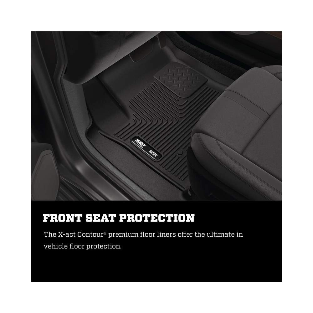 Survival of the fittest starts with the best fit. Husky X-act Contour liners combine laserscanned, exact fit with a no-slip, DuraGrip surface and a softer feel. It’s the highest evolution of the same grit-tough durability that’s gone into the Husky brand since 1988. Built for abuse that would curl the edges of lesser liners. It locks to your vehicle’s factory retention posts, with the added stability of our Stay-Put Nibs for a no-slip, no-slide, surface with absolutely zero compromise in protection. They’re made to stand up to whatever you’re laying down— including chemicals like battery acid and oil, with our FormFit Edge to keep spills contained for easy cleanup. Just remove, spray, and they’re back on the job. Available in black. Built to last a lifetime, warrantied the same. Proudly Made in the USA.