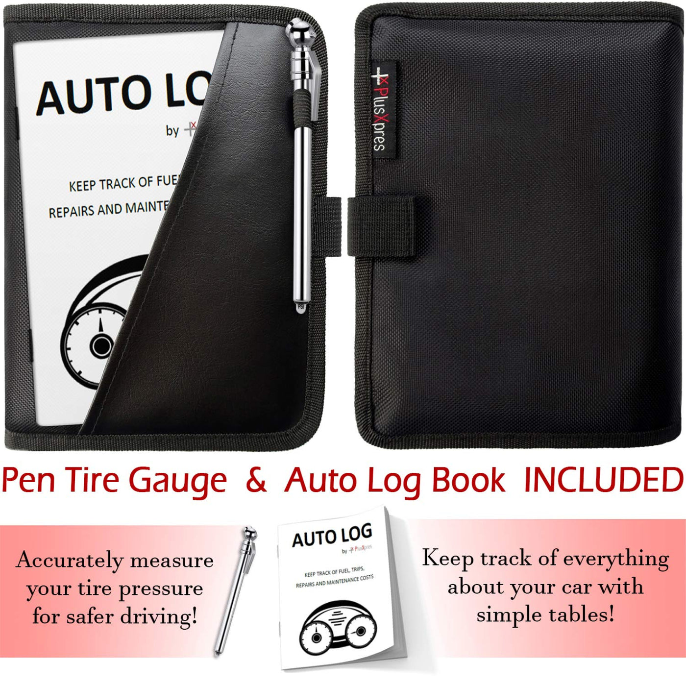 The PlusXpres Glove Box Organizer folds compactly in a stylish and efficient way to clean up and organize your car. It is designed to keep all your important documents and paperwork neat, organized, but also nearby, out of sight and easy to find. We know you spend a lot of time in your car, which means there is a lot of important information you need to keep on hand in case you get pulled over, need an oil change or just want to keep all your service and repair receipts organized. That's why we designed our Glove Box Document Holder as a premium Car Manual Case to help you with all of the above and to make your life easier. We are including a great, easy to use and compact Auto Log Book, to match your Glove Box Compartment Organizer. Includes 4 categories (Fuel Log, Trip Log, Maintenance & Repairs, Notes) to help you record and keep track of everything about your car with simple tables. Ideal for car enthusiasts, car restoration, business owners, or general use. Keeping a log book of your vehicle not only helps you keep your car running and functioning for a long time, but it also adds a level of authenticity to the value of your vehicle.