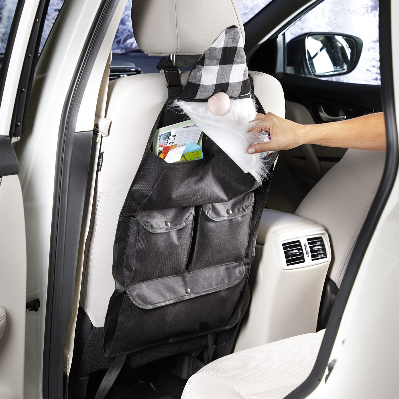 Keep your car's back seat neat and tidy with this cute Gnome Back Seat Organizer. It offers multiple pockets for storage of various sized items. Adjustable straps with hook closures make installation on the back of the front seat easy.