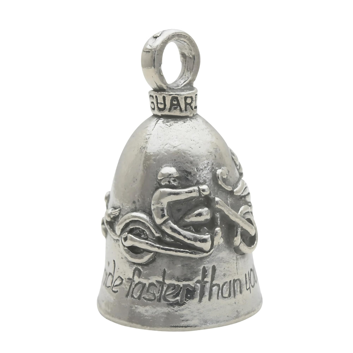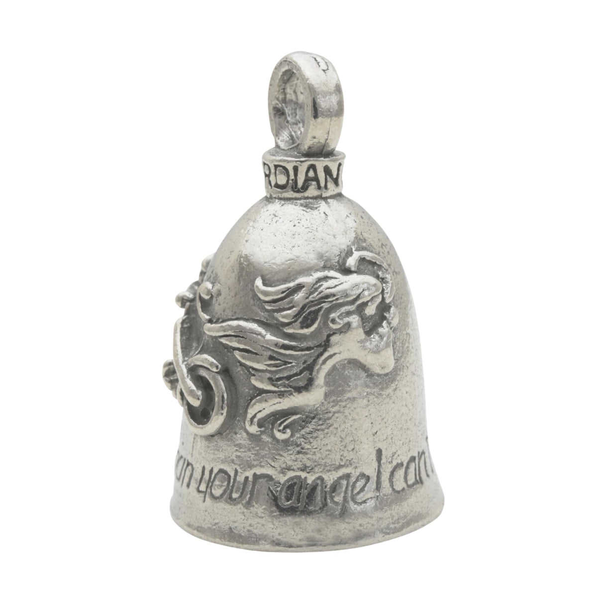 Guardian Bell Never Ride Faster Than Your Angel Can Fly Good Luck Bell w/Keyring & Black Velvet Gift Bag | Motorcycle Bell | Lea