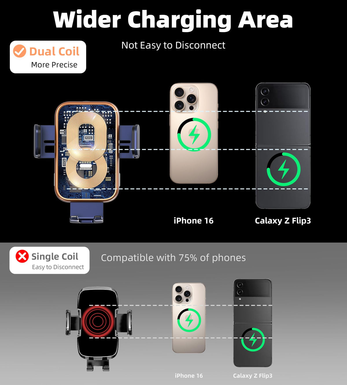 Gumosh Dual Coil 15W Wireless Car Phone Charger,2 In 1 Auto Clamping Car Mount Charging Phone Holders For Air Vent&Dashboard,Car