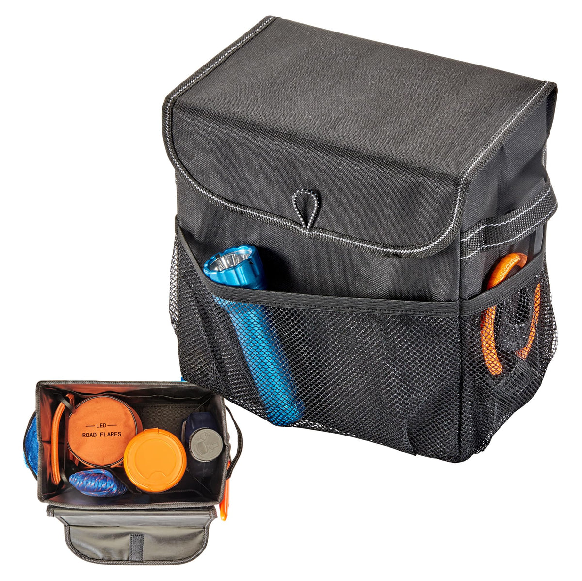 A car trunk organizer for sedan or small trunk organizer for any vehicle, or use as a front seat organizer or back seat organizer. Available in two sizes, the Carganizer is a car container with versatile use all around the automobile.