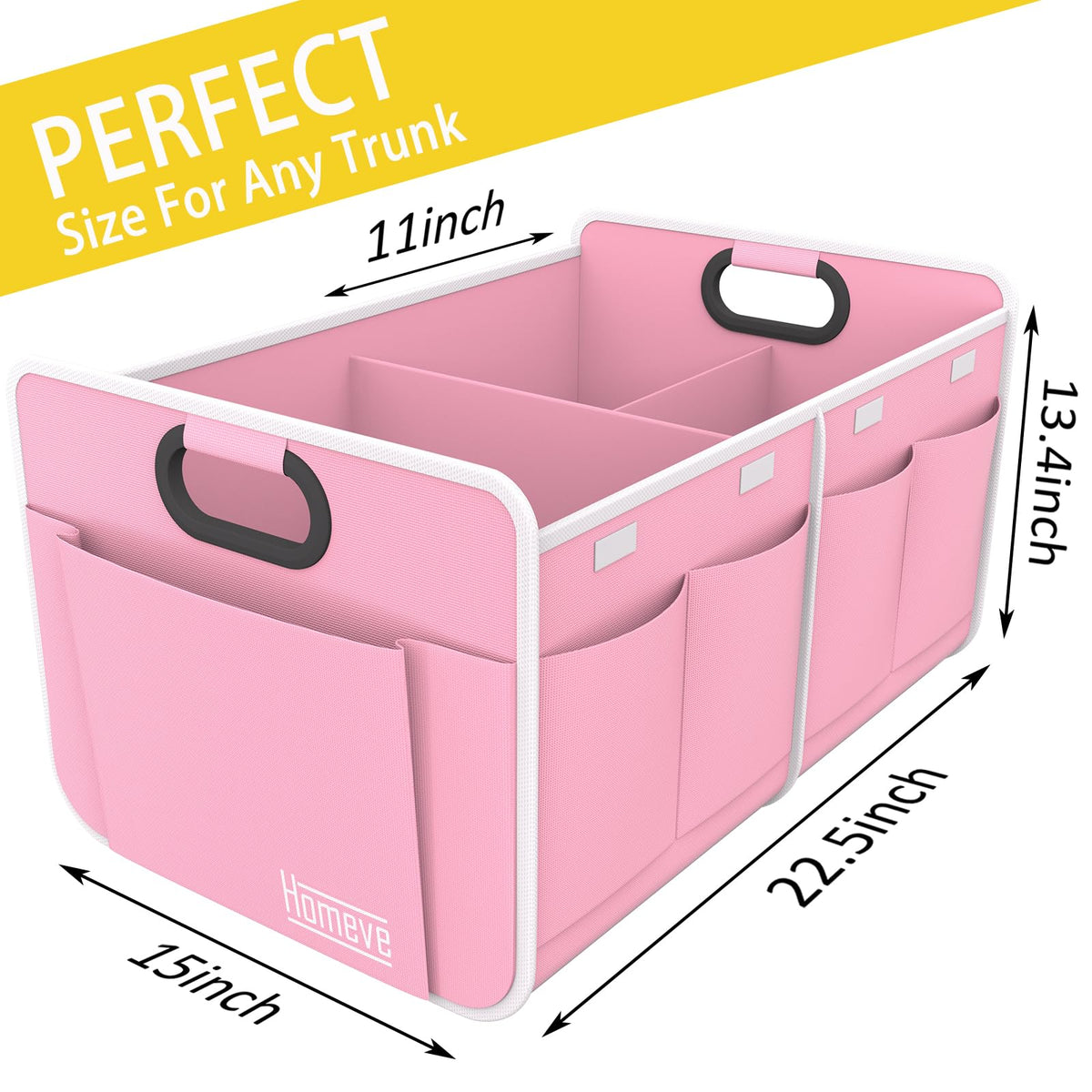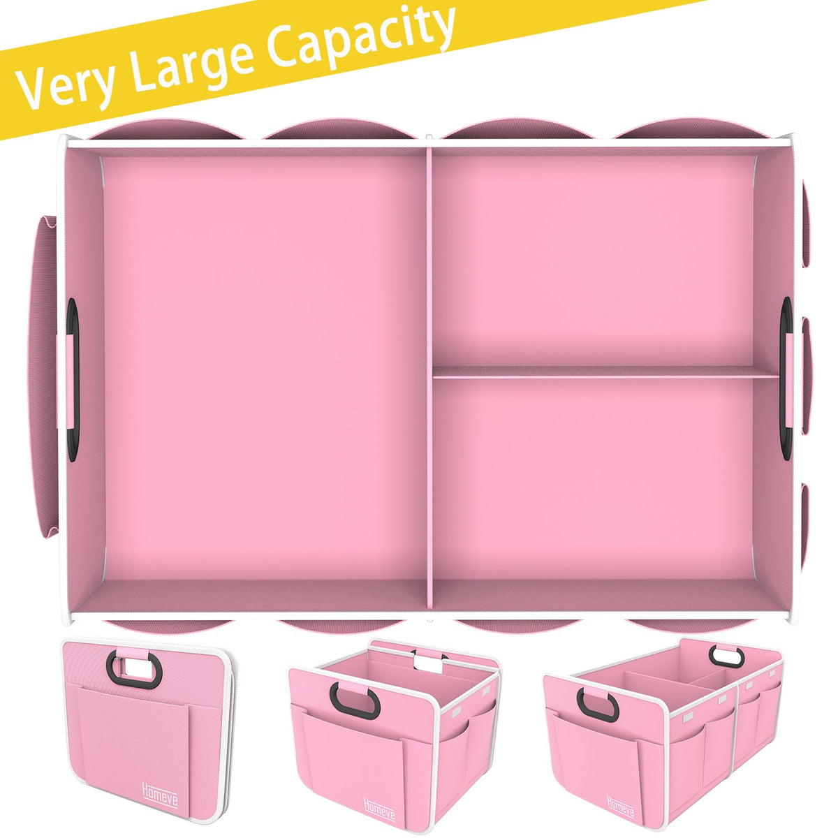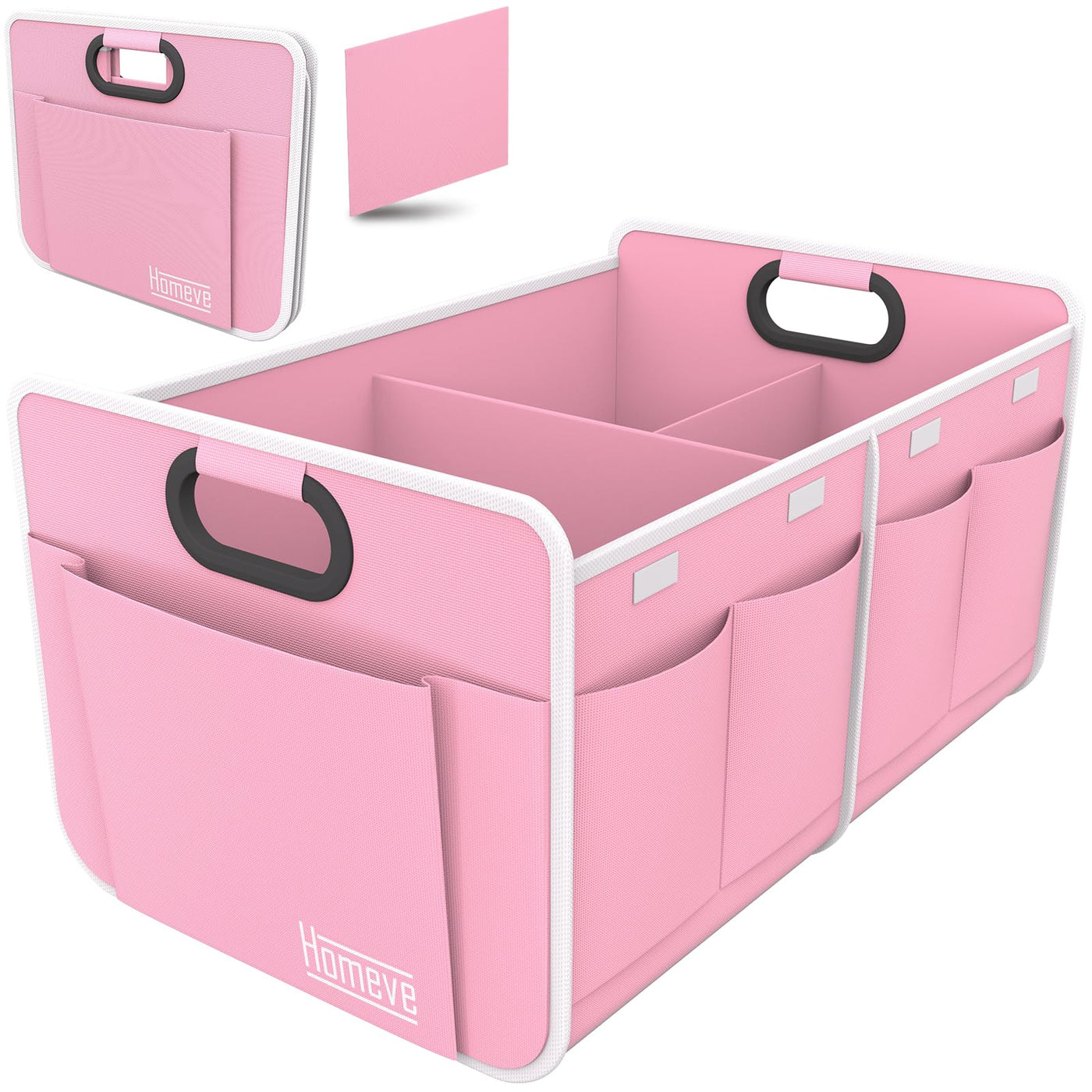 Homeve Car Trunk Organizer, Car Storage, Reinforced Handles, Collapsible Multi-Compartment Car Organizers (Pink, 2 Compart)