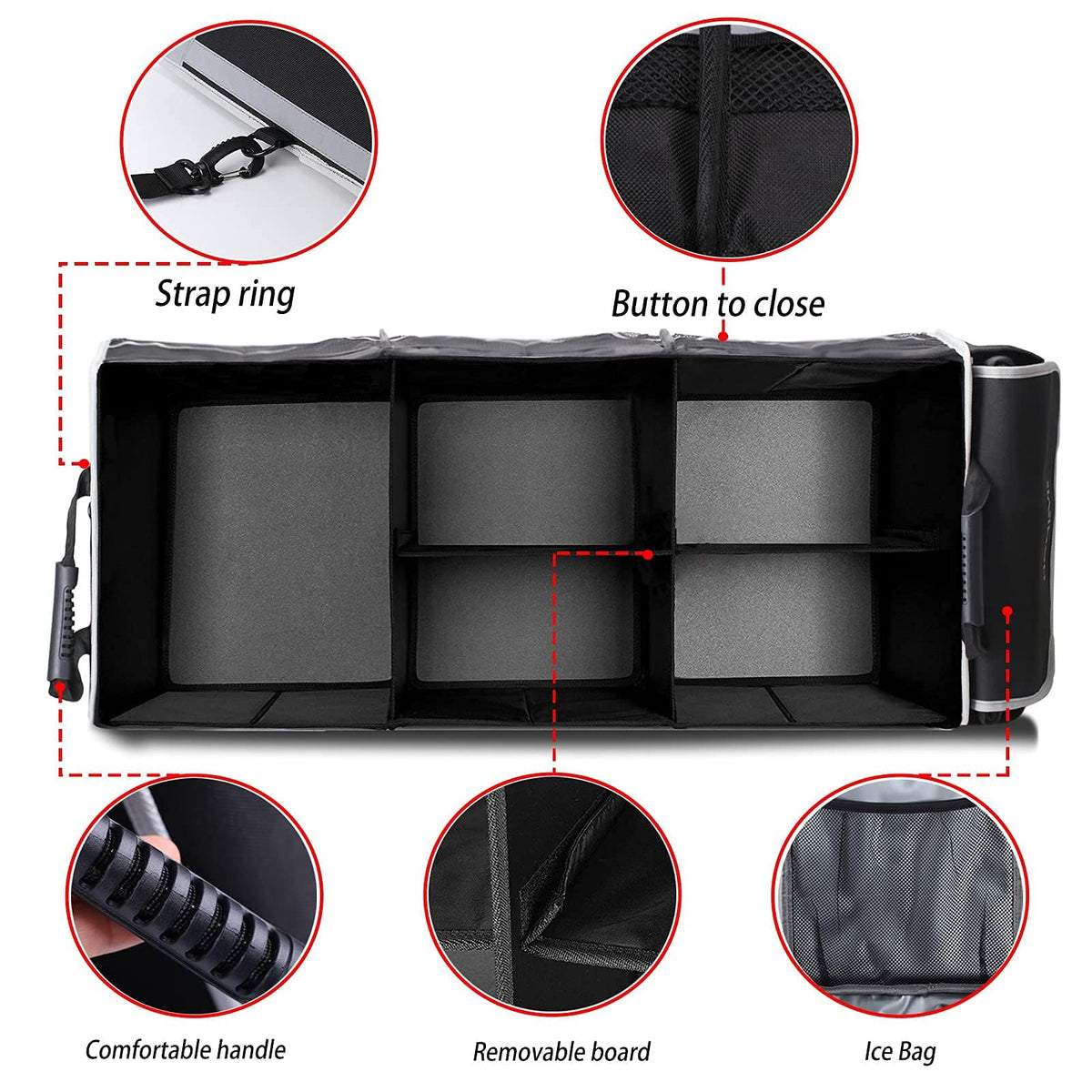 Homeve Extra Large Collapsible Trunk Organizer With Cooler Bag,3 Compartments Storage Organizer With Cover