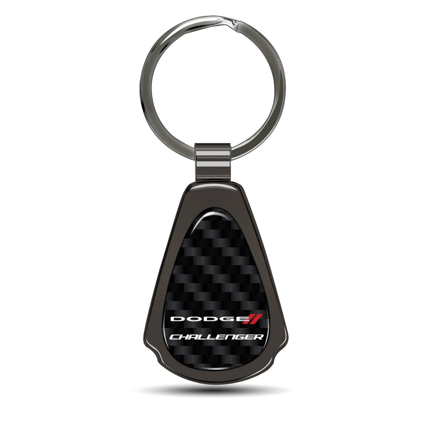 iPick Image Compatible with Dodge Challenger Real Black Carbon Fiber Gunmetal Black Metal Teardrop Key Chain