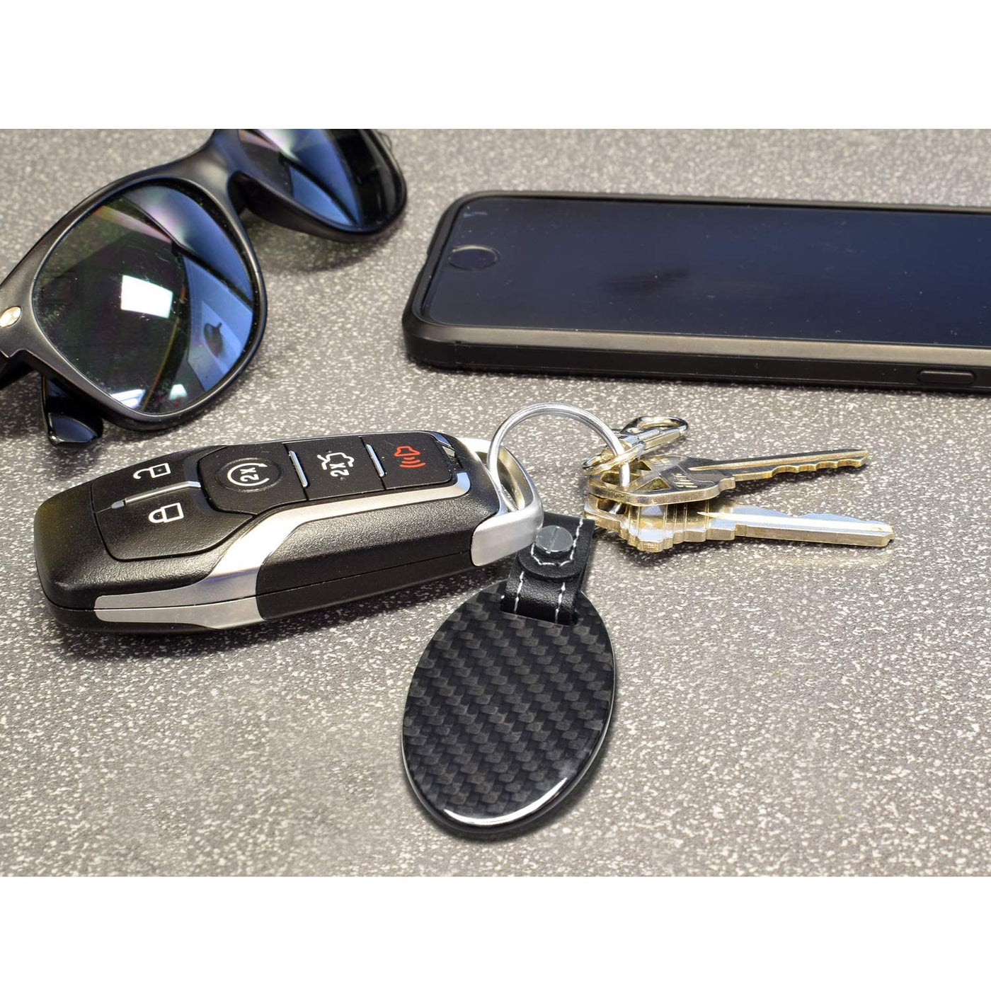 Introducing the only officially licensed GM keychain that combines fashion and style. Here are the key features of this product: Premium Quality: This keychain is proudly made in the USA and is the only officially licensed keychain available. It adheres to the highest quality standards, ensuring durability and long-lasting performance. Elegant Design: The keychain features a one-piece design made from real black 3K carbon fiber. This design adds a touch of elegance and offers an appealing look from every angle. The keychain is equipped with a top-grade soft black leather strap. This strap includes a split key ring, making attaching and releasing keys easy. The soft leather ensures a comfortable grip. Full-Color Logo: One side of the keychain is adorned with a full-color UV-resistant OEM-style car logo graphic. This logo adds a personalized touch and proudly represents the brand. Pendant Size: The keychain has a pendant size of 2-1/4' x 1-1/4', perfectly balancing size and portability. It is compact enough to fit comfortably in your pocket or purse. The keychain comes in a nice gift box, making it an excellent choice as a gift for yourself or a loved one. The stylish packaging adds to the overall appeal of the product. Official Licensed Product: It is a brand new official licensed product made by iPick Image, LLC. This guarantees its authenticity and ensures that it meets the necessary standards and requirements. By owning this officially licensed keychain, you can showcase your love for the brand while adding a touch of elegance to your everyday carry. It serves as a fashionable accessory and a practical tool for keeping your keys organized.