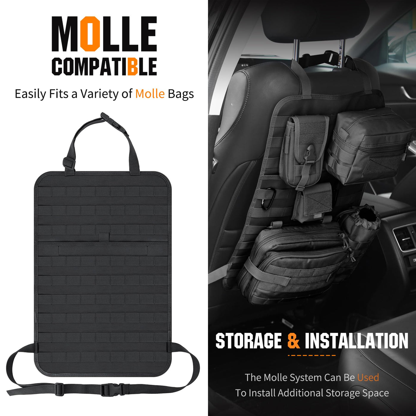 IronSeals Car Seat Back Organizer, Tactical Molle Panel Sag Proof Vehicle Seat Cover Protector Nylon Car Seat Back Hanger Bag Pa