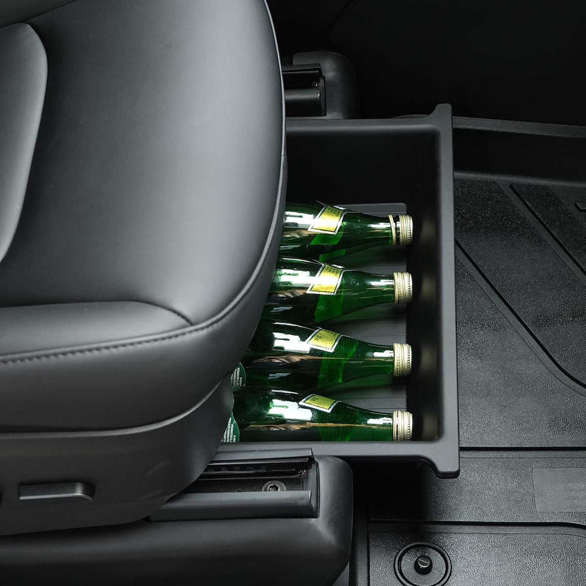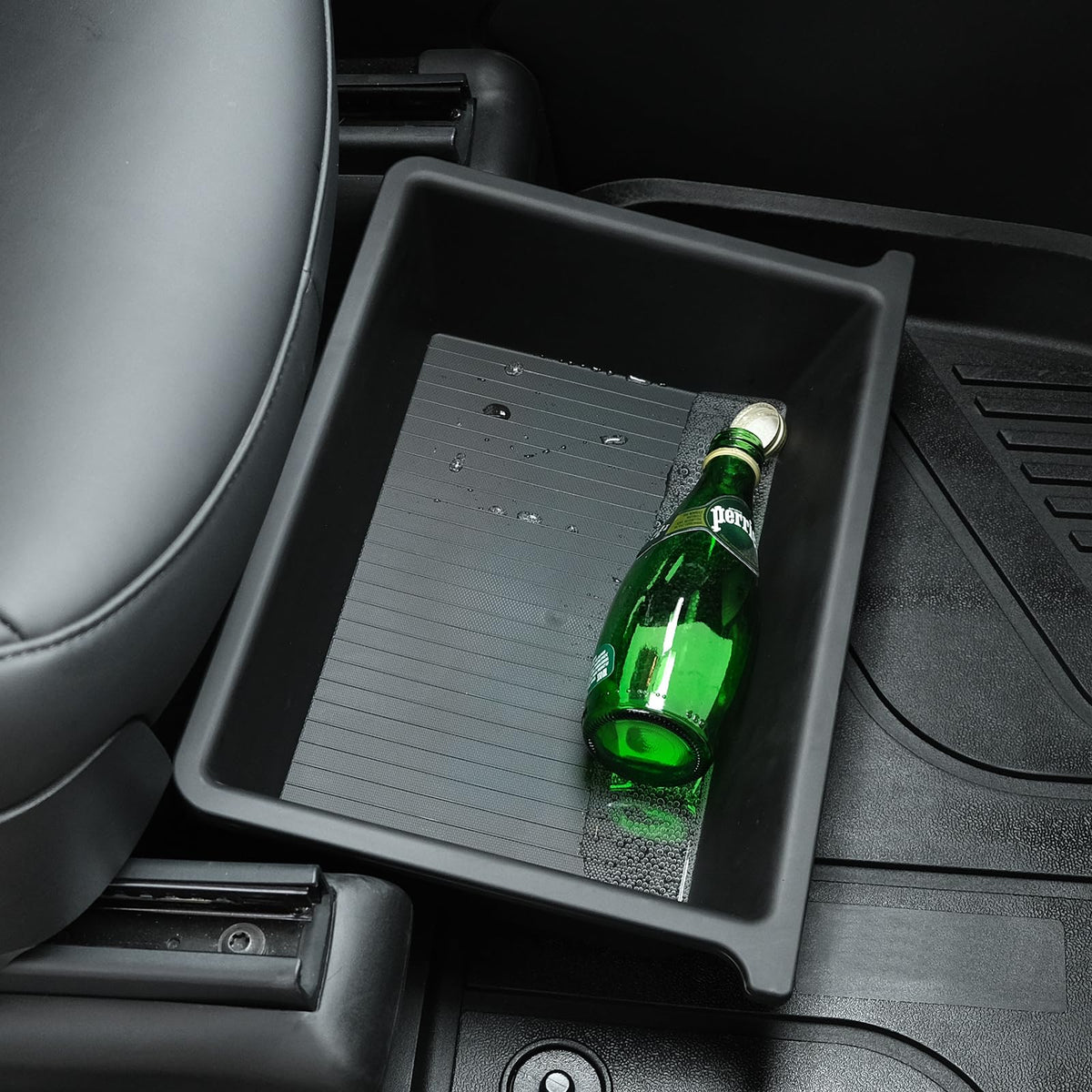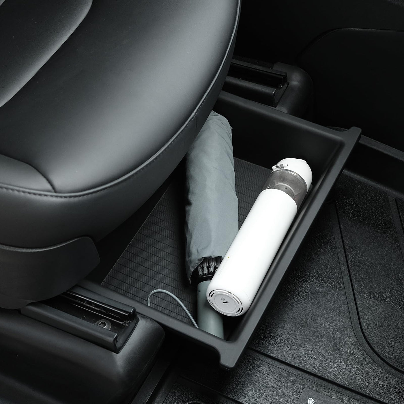 Jawjut Front Under-seat Storage Box compatible with Tesla Model y Model x, Waste Bin Accessory, ABS+TPE Double Hidden Design