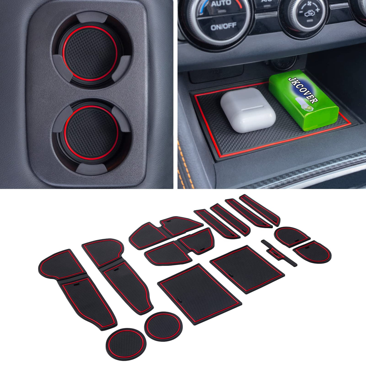 JKCOVER Compatible with 2018 2019 2022 2021 2022 2023 Crosstrek/Impreza Center Console Accessories No-Slip Cup Holder Insert Mats Flexible Rubber Material(Red, 15PCS)