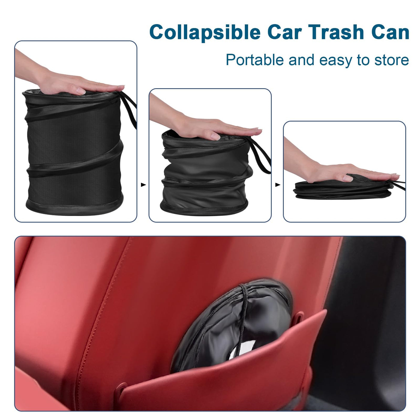 Kincown Car Trash Bin, 2 Packs Pop-Up Car Trash Can, Medium-Sized Collapsible Car Garbage Can With Elastic Band Hanging, Double-