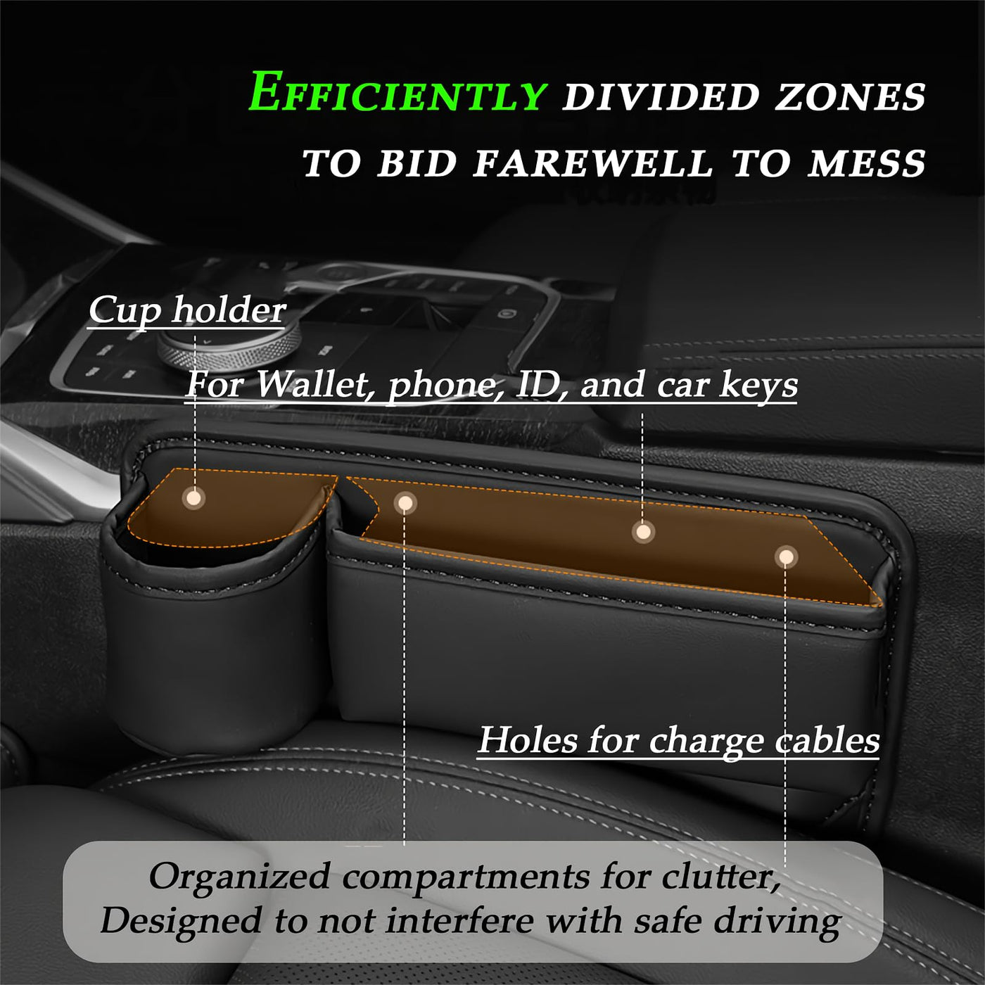 Leqbo Car Seat Gap Filler With Cup Holder,Leather Car Seat Gap Organizer,Front Car Seat Storage Box For Phones,Keys, Wallet, Sun