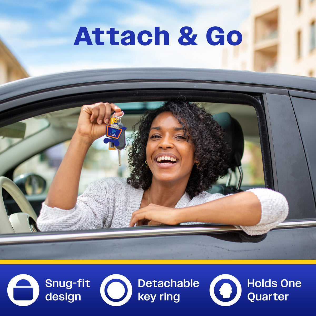 Never Get Stuck at the Cart Again: Designed specifically for Aldi carts, this embroidered keychain keeps a quarter handy so you're always ready to shop. Works with laundry coins and car wash tokens too!