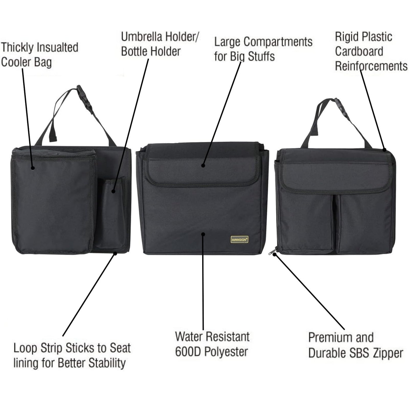 Marksign Deluxe Car Trunk Organizer, Detachable Backseat Hanging Organizer Storage Modules With Built-In Cooler For Car Small Su