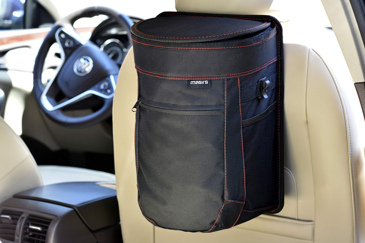 Masirs Vehicle Trash Can - Large Removable Leakproof Garbage Bag, Fasten The Car Waste Basket to Back or Front Seat Headrest. Great Garbage Can for Car, SUV, Truck, Van or Minivan.