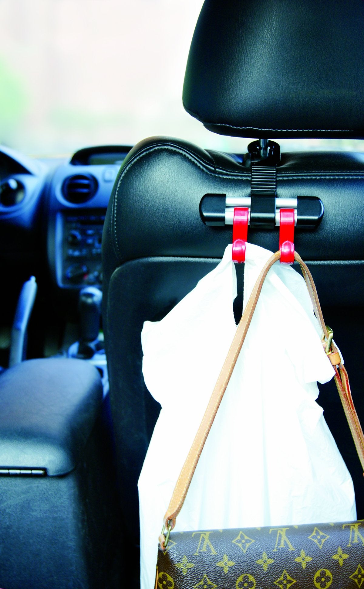 Maxsa 20058 Headrest Hanger 2 Hooks for Bags, Purses and Car Storage, Black and Red