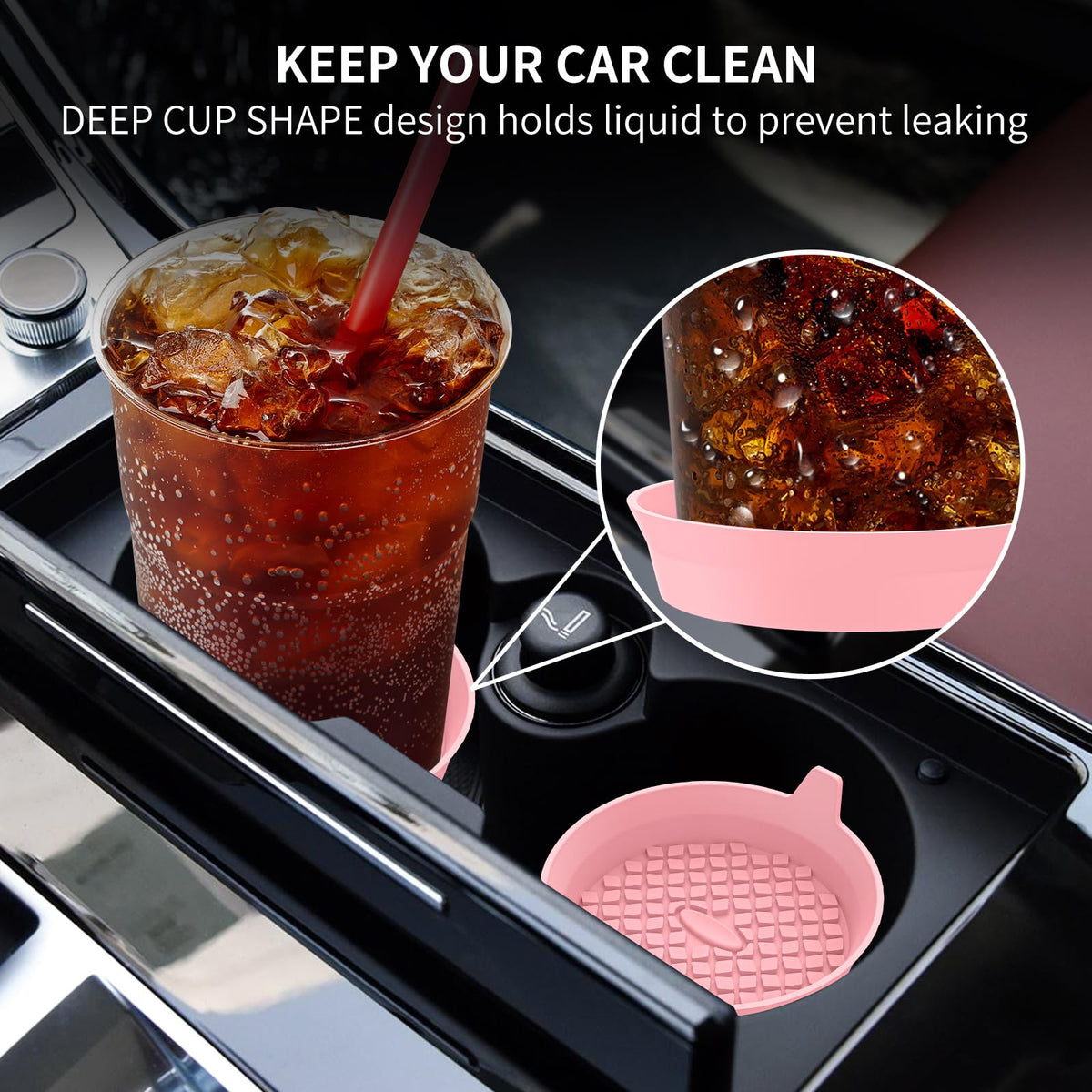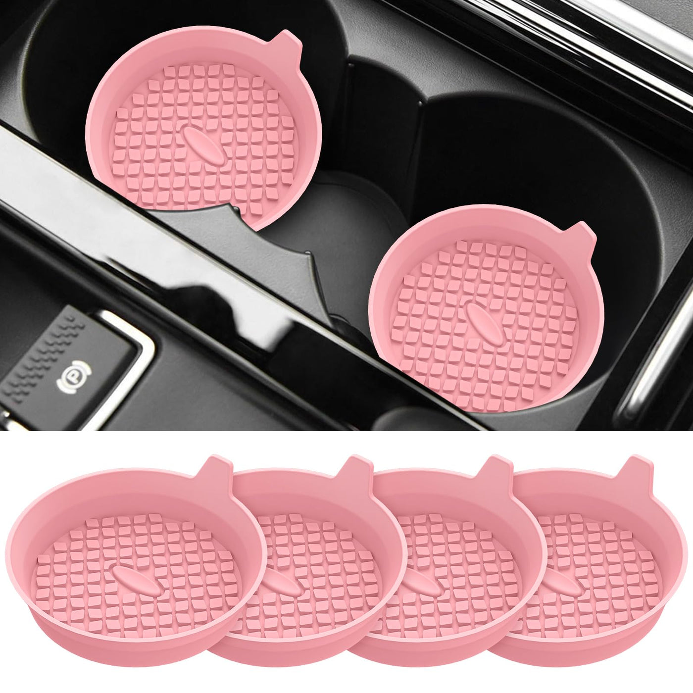 ME.FAN Car Coasters [4 Pack] Silicone Car Cup Coasters / Cup Mats - Universal Non-Slip Recessed Car Interior Accessories - Car Cup Holder Insert Coasters Pink