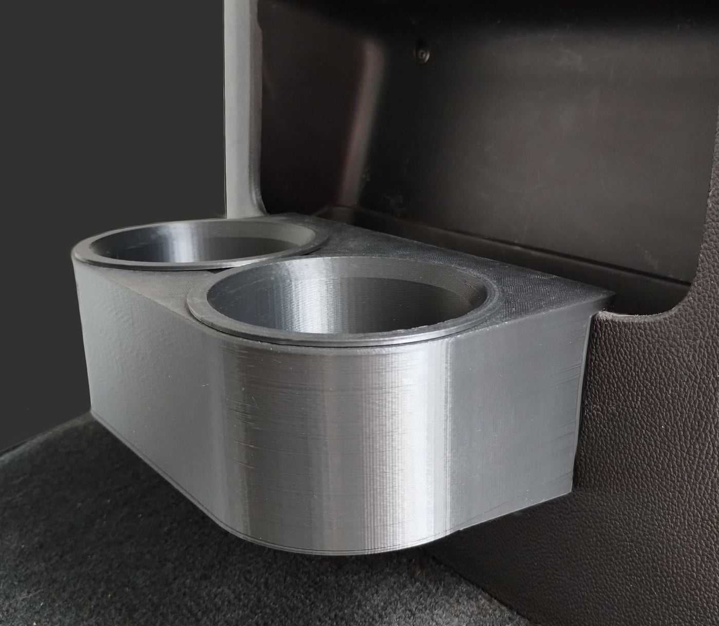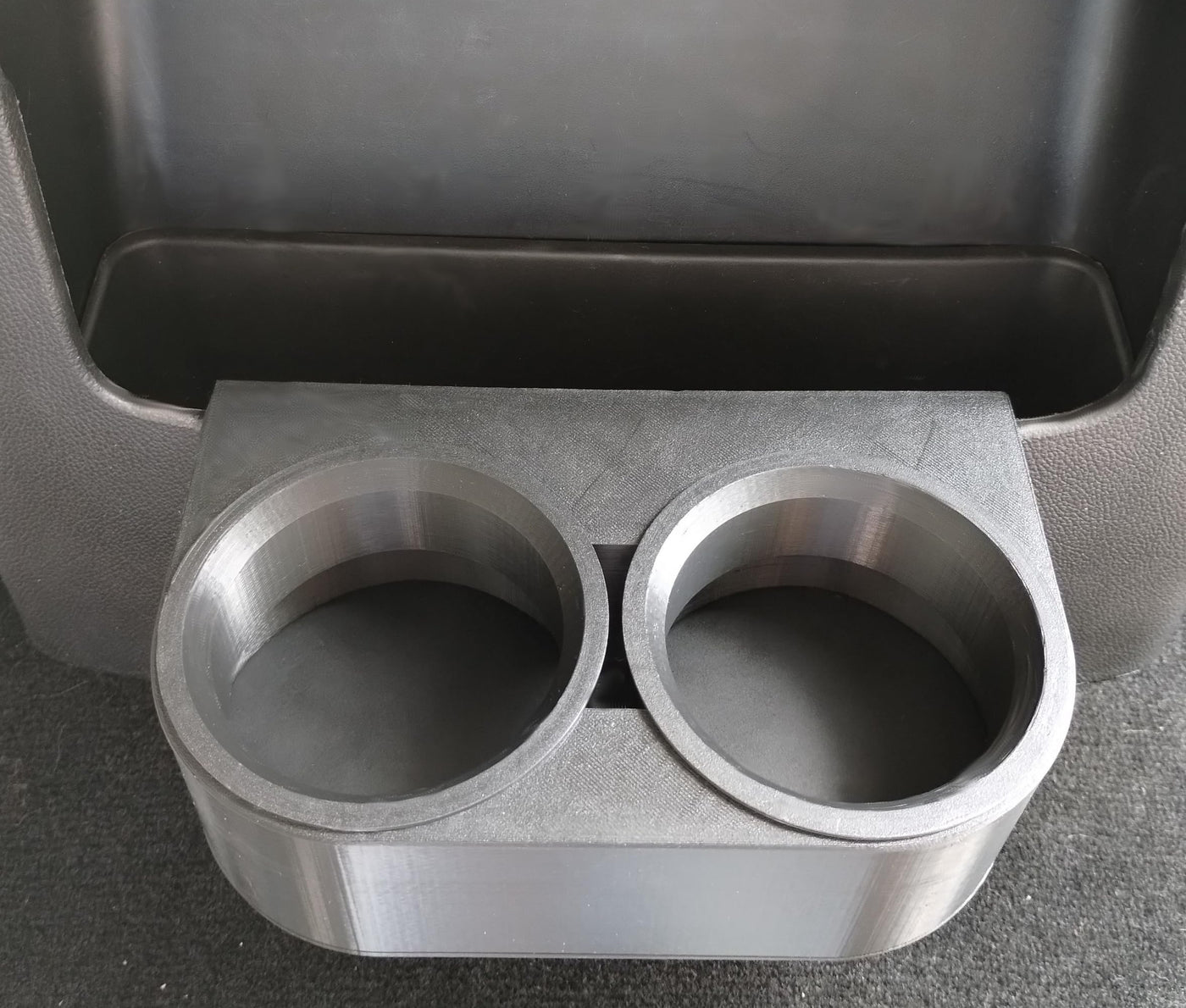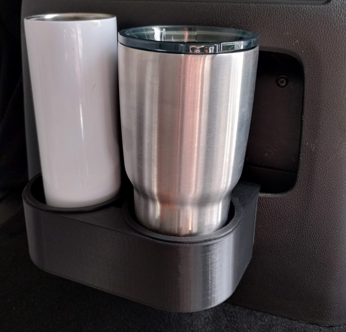 This is a 3D printed rear dual cupholder for the 2015-2020 Yukon, Suburban, Tahoe, Denali, Sierra and Silverado. It won't fit the Sierra or Silverado with the flip up console. 3 mounting options: 1: Quickly clip into place 2: Use the silicone adhesive for a more solid mount 3: Use the included screws for a permanent mount The cupholders are standard 3'' sizes, but feature removable inserts which allow up to 3.7'' drinks such as larger 36 oz drinks or even coffee cups.