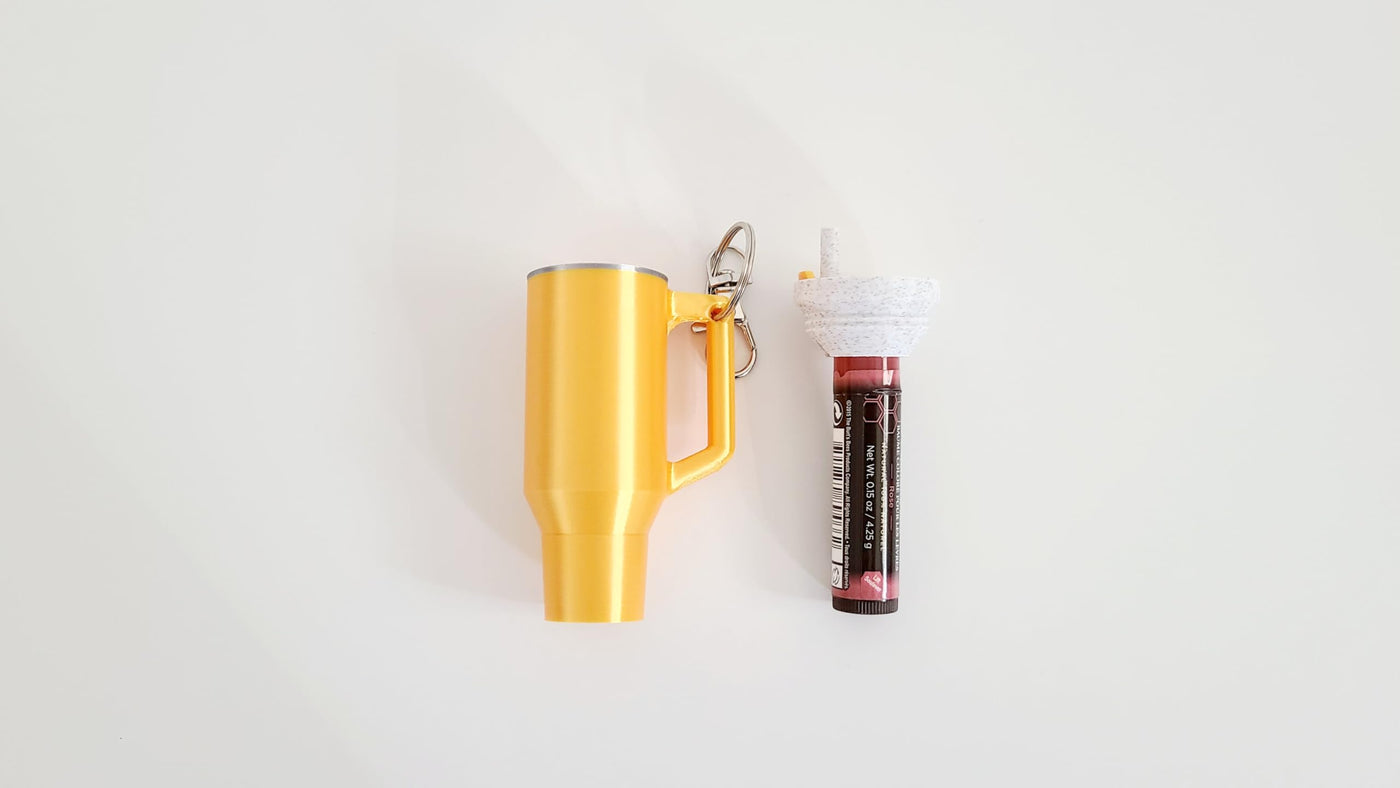 Miniature Tumbler Replica Keychain - 3D Printed Desk Accessory Home Decor (3 Pack: Gold Chapstick Edition)