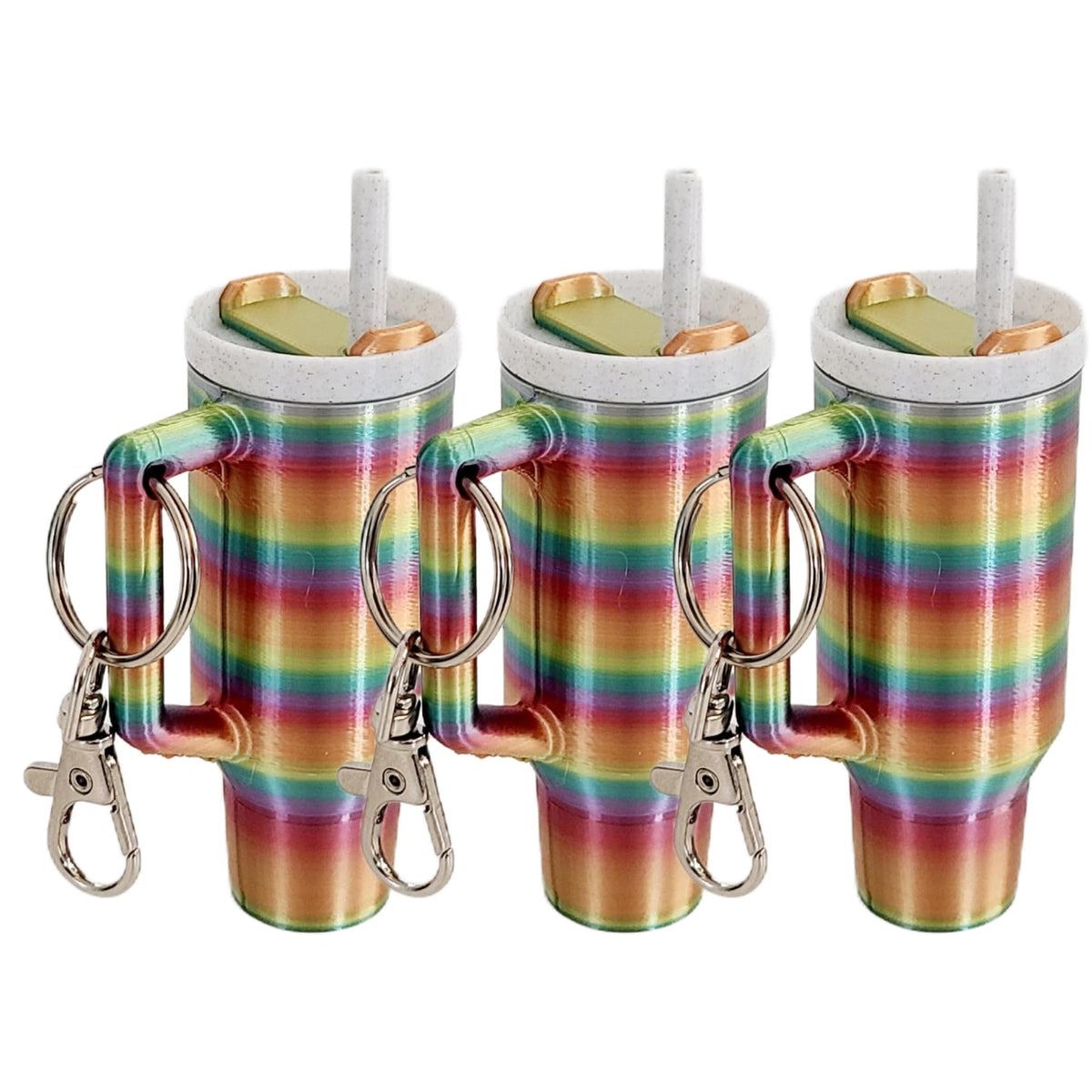 Miniature Tumbler Replica Keychain - 3D Printed Desk Accessory Home Decor (3 Pack: Rainbow)
