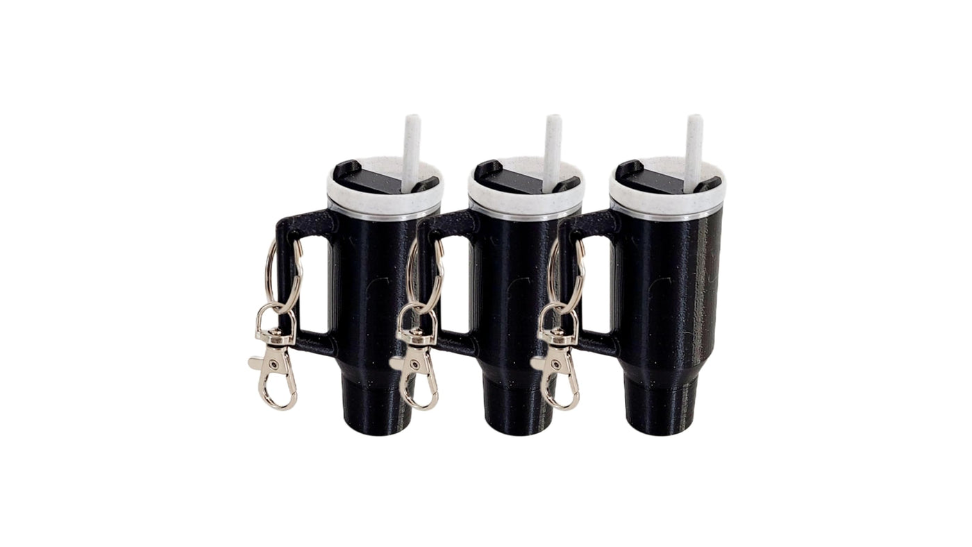 Miniature Tumbler Replica Keychain - 3D Printed Desk Accessory Home Decor (3 Pack: Twinkling Black)