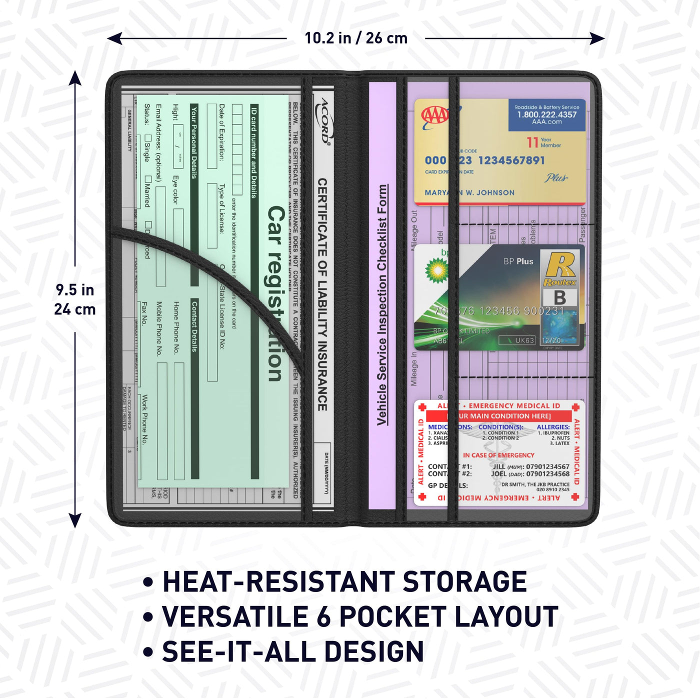 registration-insurance-card-holder car-registration-holder Introducing Moto4X car registration and insurance holder: Keep all your important car documents organized and easily accessible with this car insurance holder. This premium PU leather high quality car registration and insurance card holder is designed to fit perfectly in your glove compartment, providing a secure and convenient storage solution for your license, registration, insurance cards, and other essential documents. With multiple pockets and slots, this car paperwork organizer ensures that everything is neatly organized and protected from damage. The vibrant colors adds a touch of style to your car interior. No more sifting through your glove box, get your car paperwork in order with this must-have insurance and registration holder. Product Dimensions 0.51 x 5.12 x 9.45 inches. Item Weight 6.7 Ounces