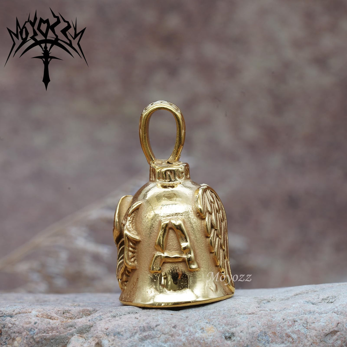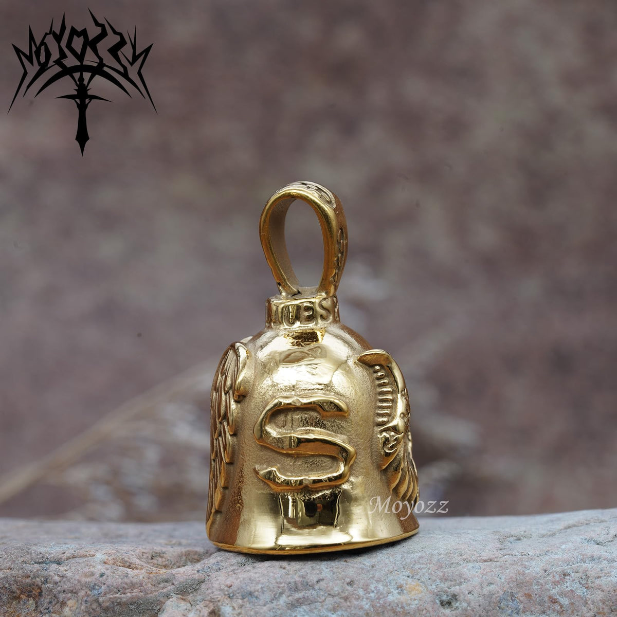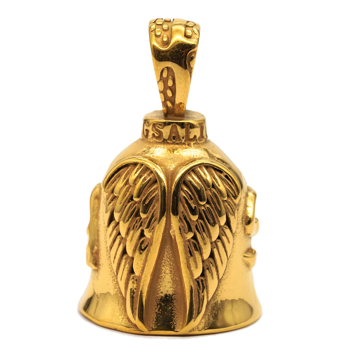 MOYOZZ Angel Wing Knight Bell Letters USA Motorcycle Bike Riding Guardian Bell - Never Ride Faster Than Your Angel Can Fly (Gold