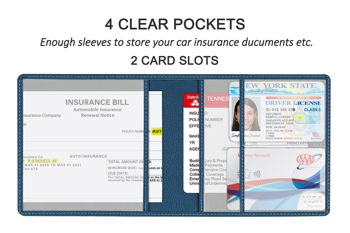 New Fashion Kingdom Car Registration And Insurance Holder, Premium Pu Leather Vehicle Glove Box Car Organizer Men Women Wallet A