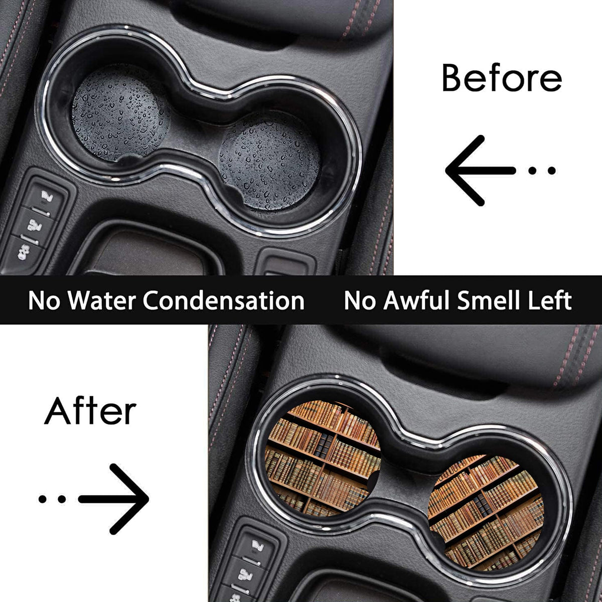 Old Books Library Car Coasters For Cup Holders, Car Accessories, 2 Pack Absorbent Ceramic Car Cup Holder Coasters For Drinks, Fo