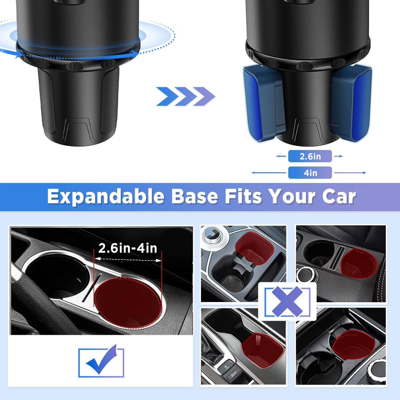 Expandable Base: 2.6-4in, measure the diameter of your cup holder before purchasing, car/truck road trip essentials | 2 In 1 Multifunction: Consists of a cup holder and extra extender. the extender can be a food tray or water bottle holder | Expandable & 360