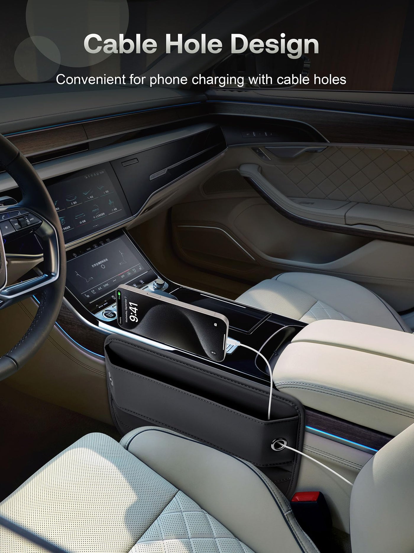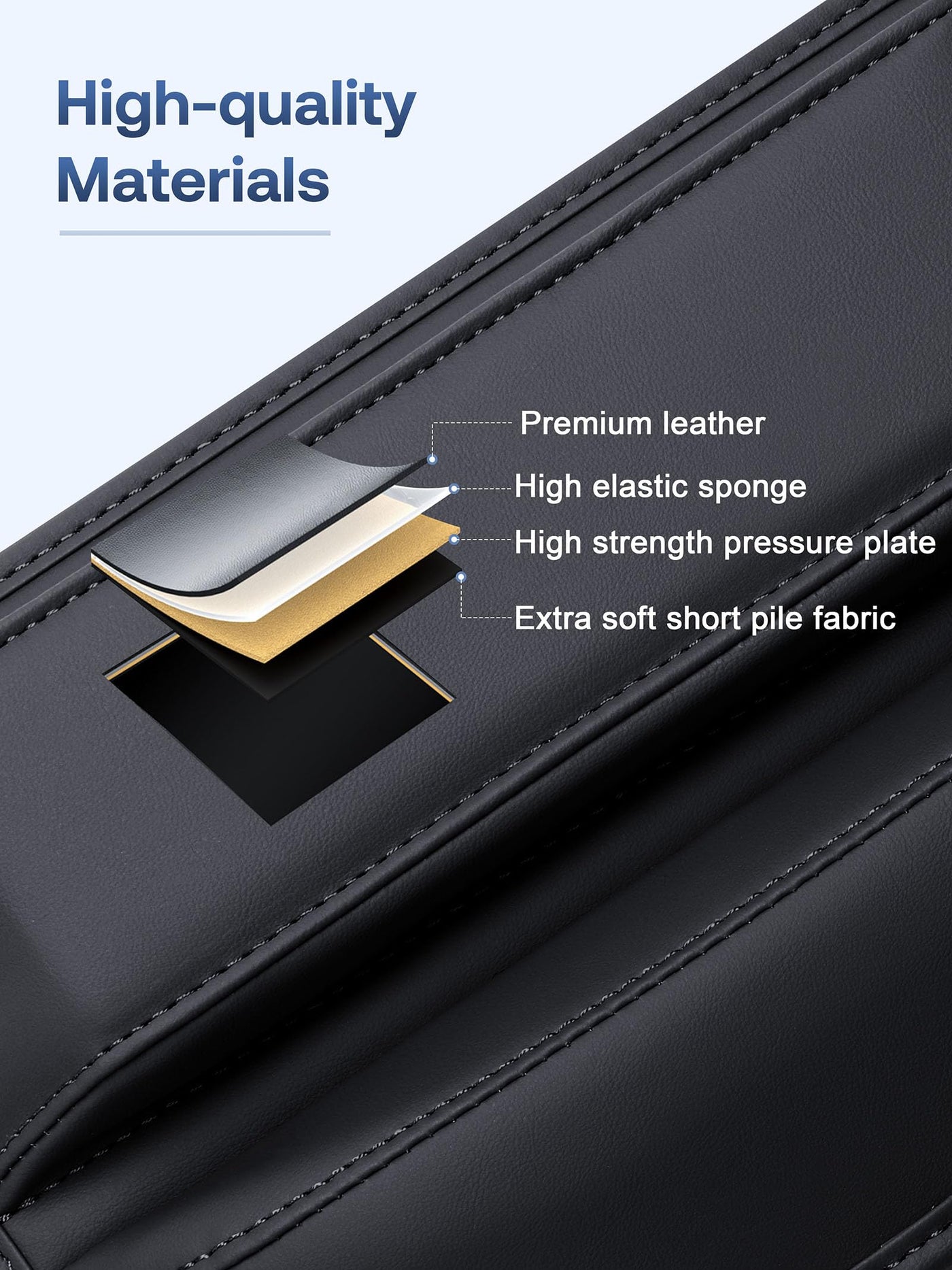 OWNTOW CAR SEAT GAP FILLER ORGANIZER No More Dropping Things Down Car Seat Gap Are you fed up things falling through the space between the seat and armrest? This car side seat gap filler fills the gap between seat and console perfectly, and it prevents other things from falling beside the seat. Not Only A Filler, But Also An Organizer This car seat gap filler provides a perfect way to reclaim a bit of space inside a car. Not a big storage area but good for keys and cellphone and possibly ID, and gas cards. Wide enough to fit things in but doesnt take away from seating area. Specification: Name: Car seat gap filler organizer Brand: Owntow Suitable: Universal fit Product Size: 11.82'' x 7.88'' Color: Black Material: Leather Net weight: 0.6 lb Packing List: 1 Pack