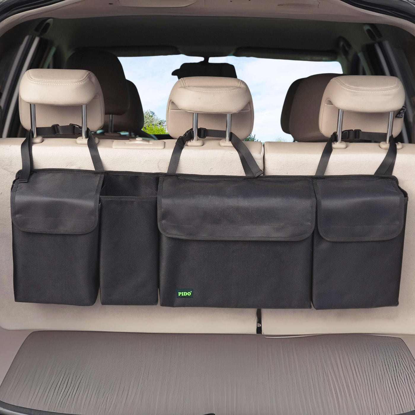 Organize your car's interior with the PIDO Car Trunk Organizer. This backseat hanging organizer features large pockets to store essentials for SUVs, trucks, MPVs, and more. The collapsible design and car storage bag make it a versatile accessory. Keep your vehicle neat and clutter-free with this convenient car organizer for the back seat. Crafted with durable materials, it offers ample space to neatly stow away items during your journeys.