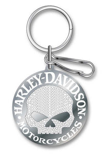 Q: How should I care for my Harley-Davidson Studded Skull Key Chain?A: To maintain the appearance of your Harley-Davidson Studded Skull Key Chain, clean it with a soft cloth and avoid exposure to harsh chemicals or extreme conditions.
