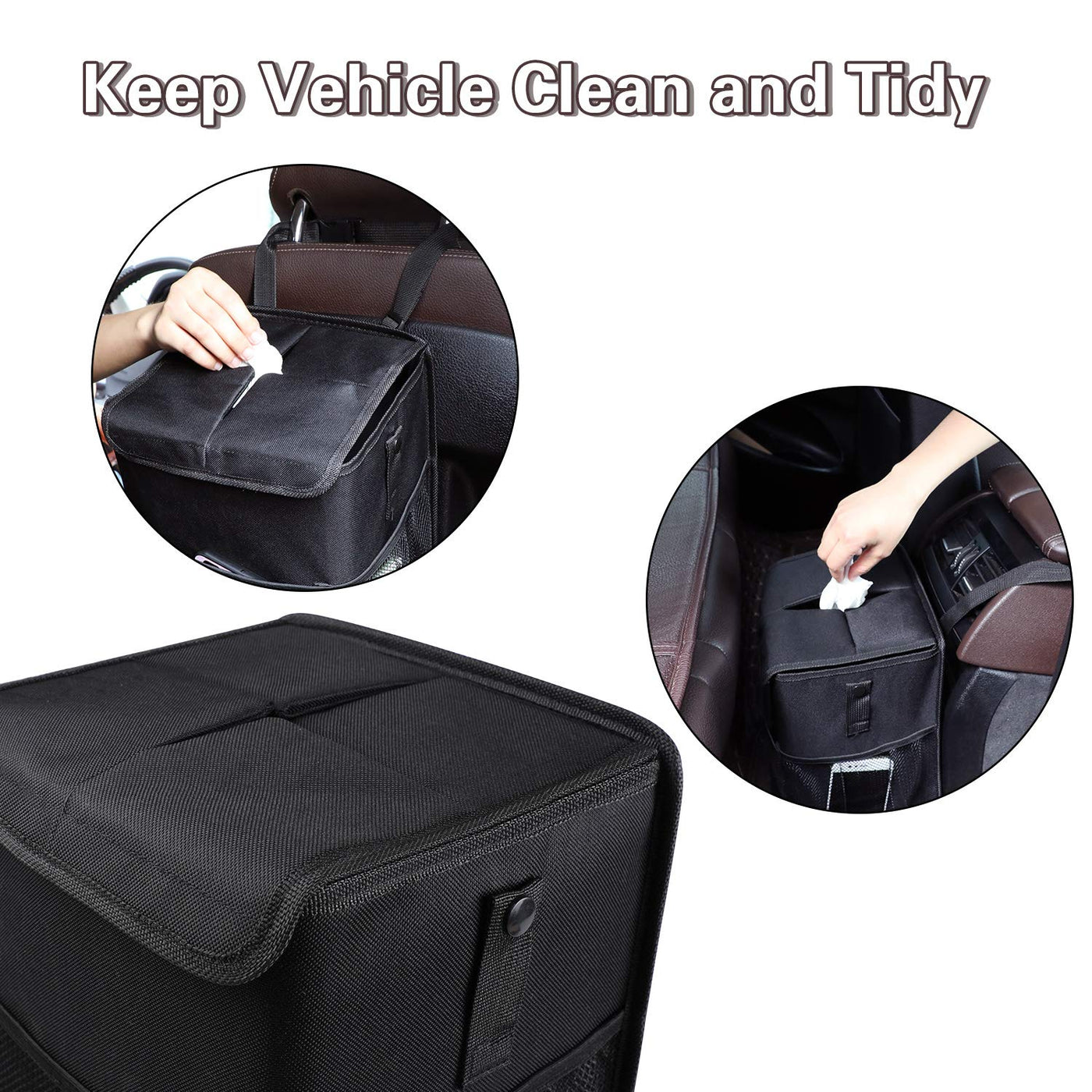 Q: Is the PowerTiger car trash can waterproof and leak-proof?A: Yes, the PowerTiger car trash can is designed with a waterproof and leak-proof liner, ensuring that any spills or messes are contained, making it ideal for messy items like food wrappers or drinks.
