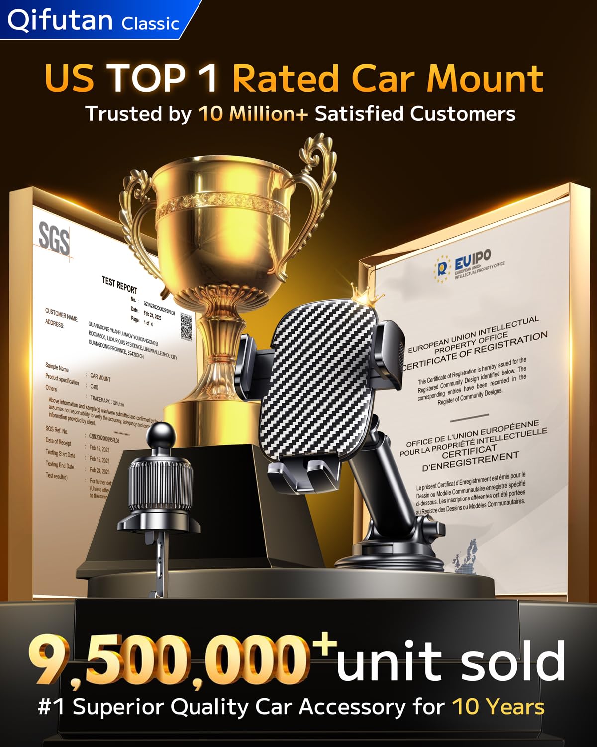 Qifutan Car Phone Holder Mount Phone Mount for Car Windshield Dashboard Air Vent Universal Hands Free Automobile Cell Phone Hold