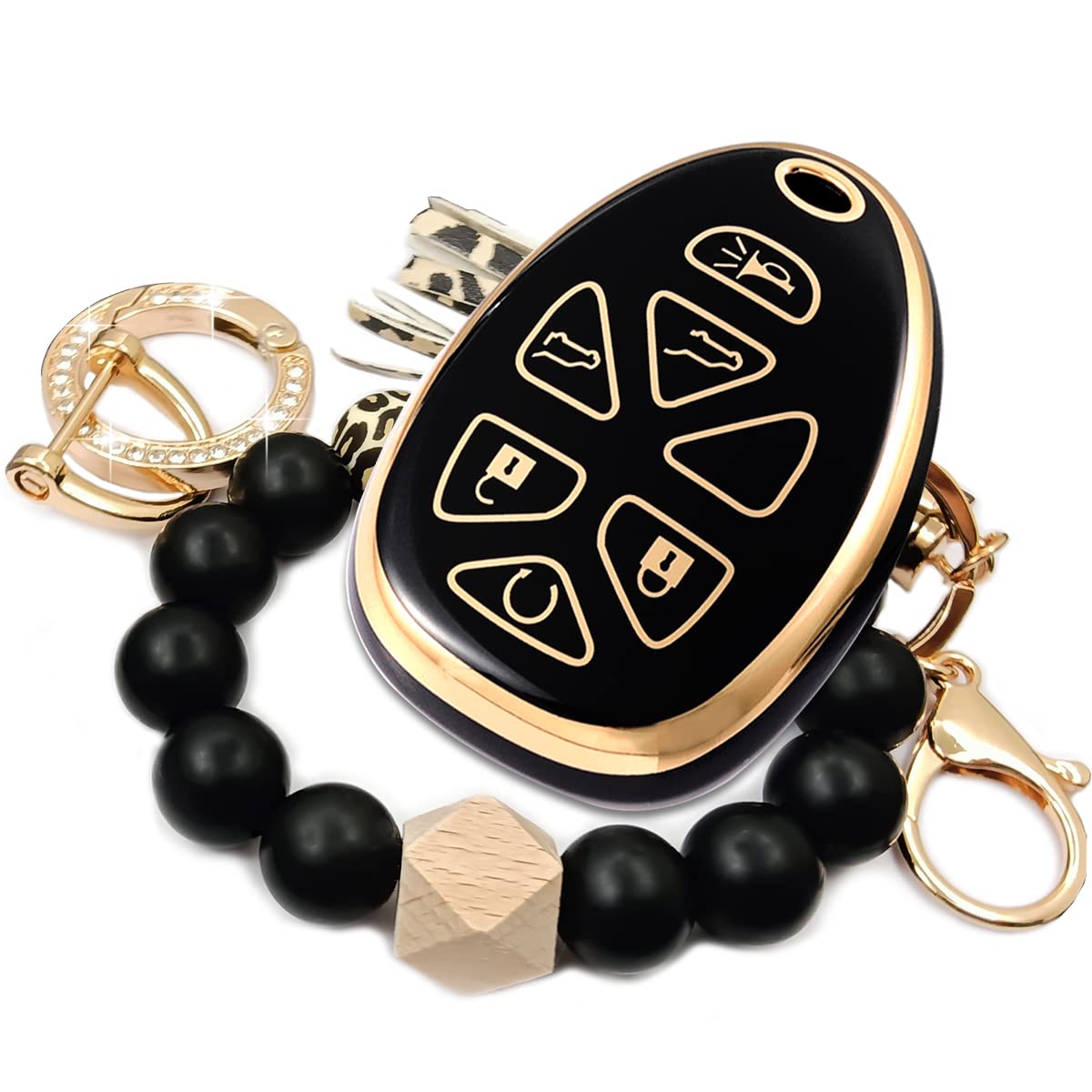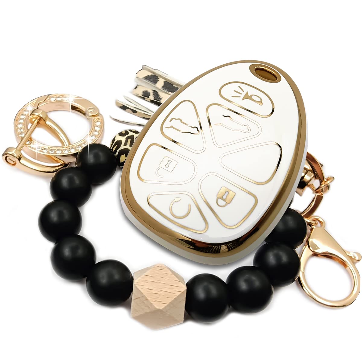 Rfsrz Key Fob Cover Compatible With Chevrolet Suburban Tahoe Traverse Cadillac Escalade Gmc Yukon Saturn Car Accessories 6 Button With Silicone Bracelet Key Holder (White)