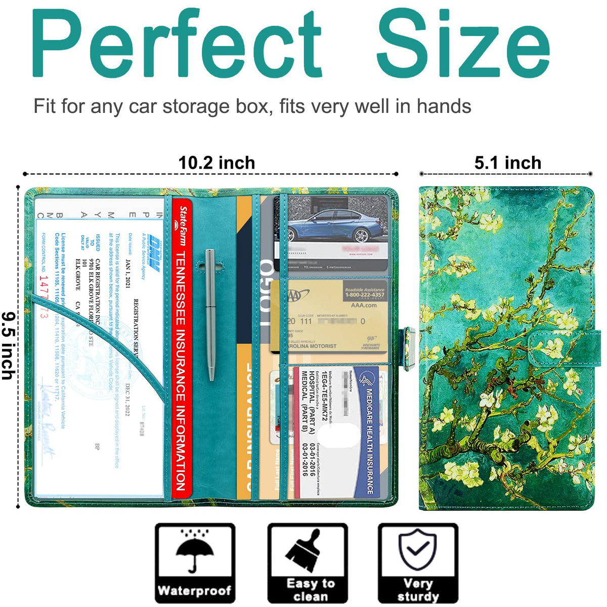 Rsaquar Car Registration And Insurance Holder, Leather Car Glove Box Organizer, Cool Car Accessories For Id, Driver'S License Cards & Essential Document, Men&Women, Almond Blossom