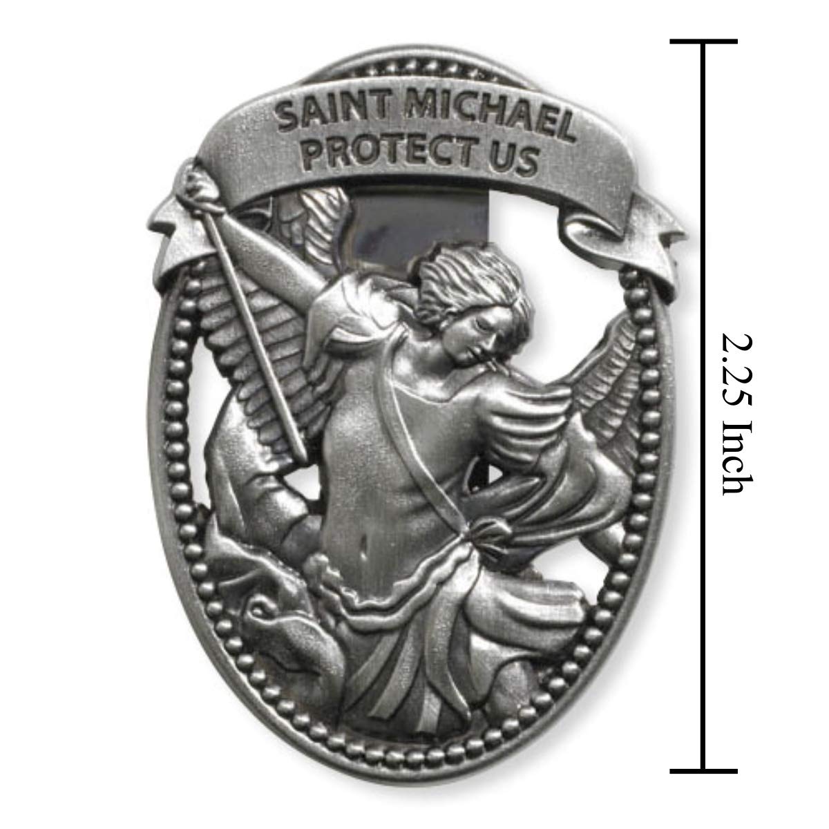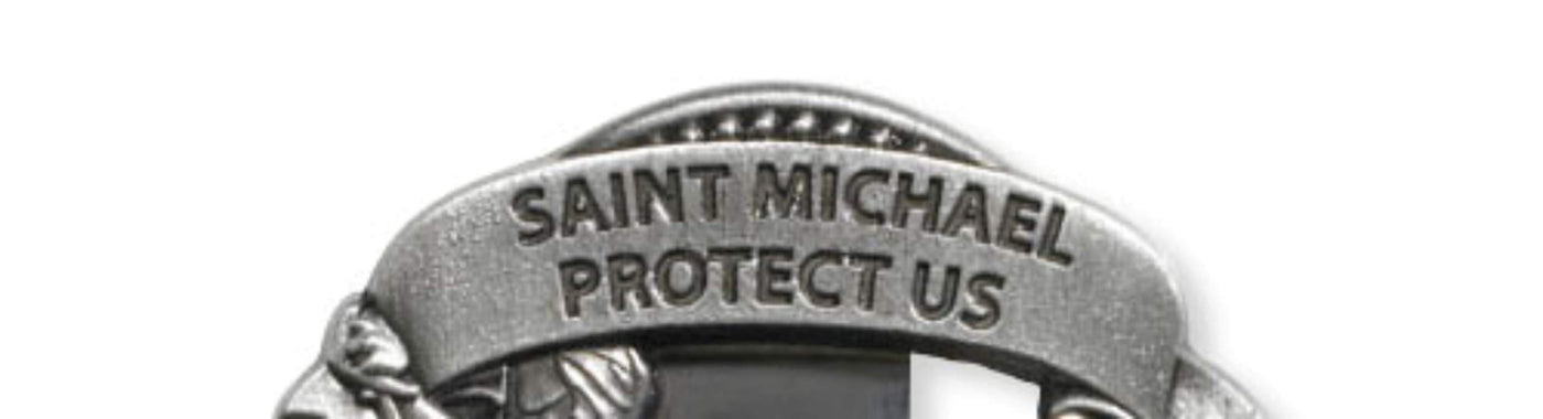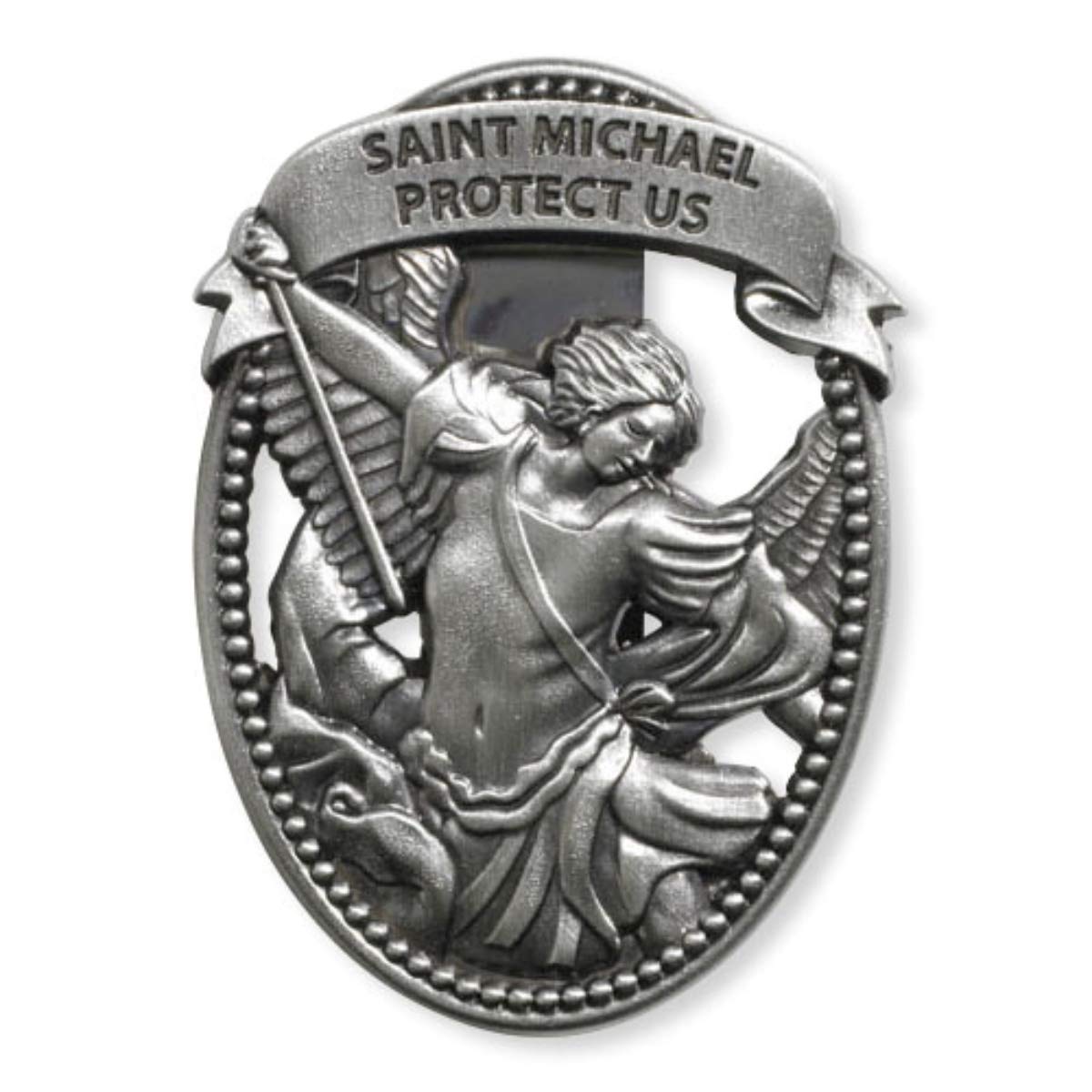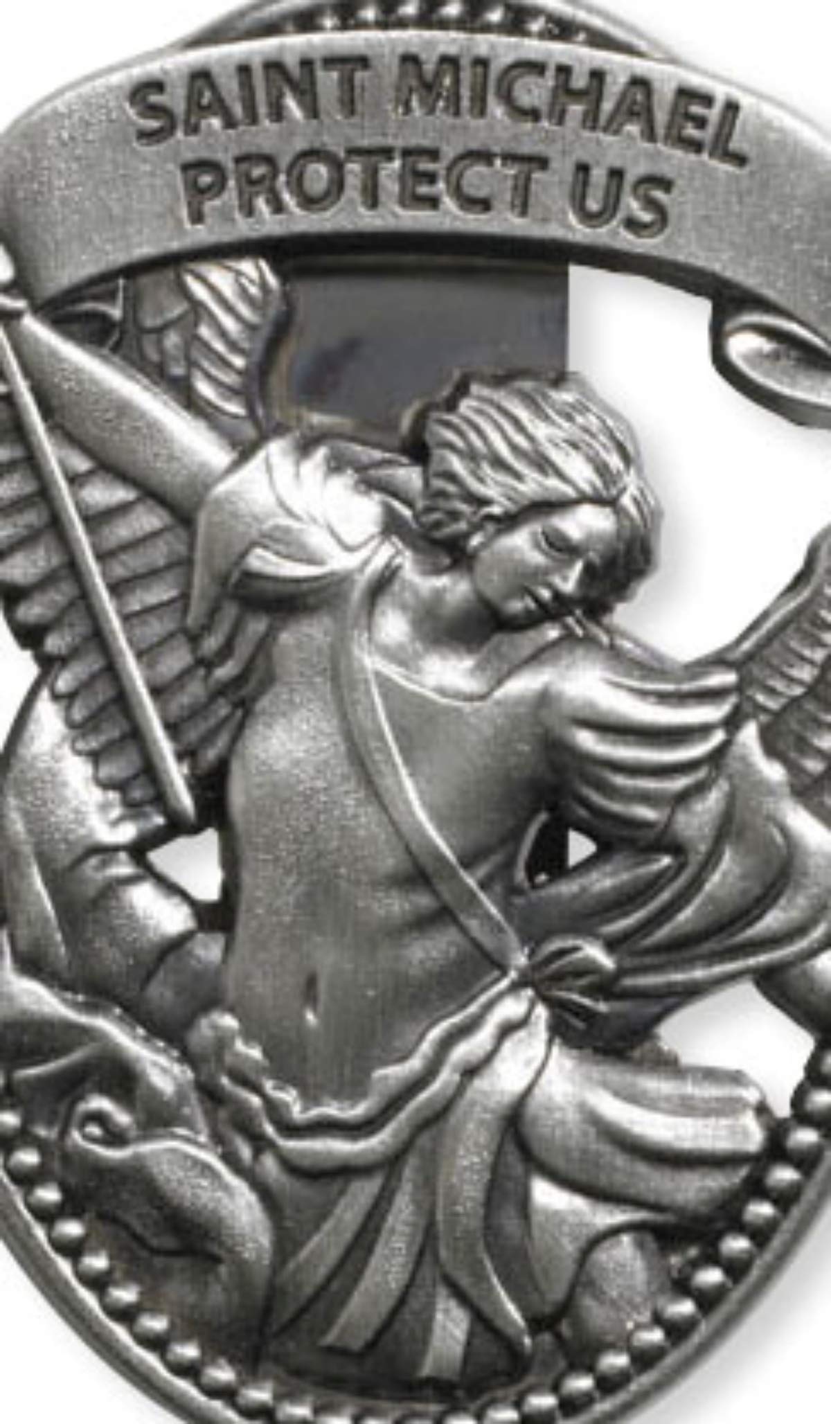 Sacred Traditions Silver Tone Zinc Alloy Archangel St Michael Protect Us Visor Clip, 2 1/4 Inch