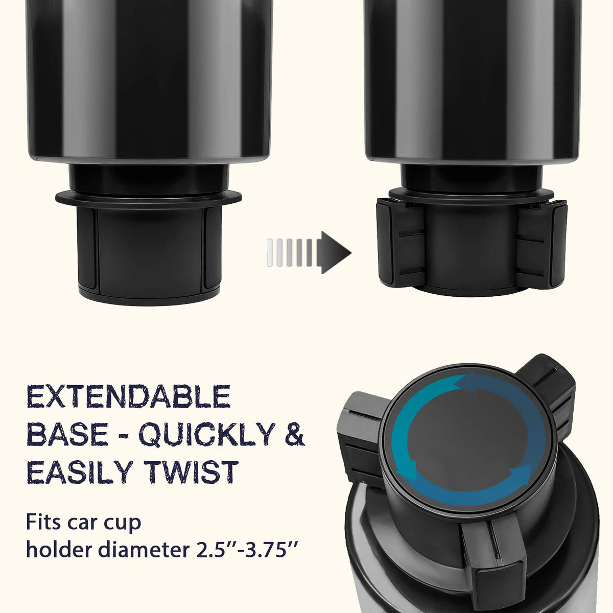 Why Choose Seven Sparta Car Seat Drink Cup Holder? The Concept Is Good For Most Factory Cup Holder With More Secure To Hold The Water Bottlesfirmly When Driving Down The Road. This Is A Must Have If You Enjoy The Large Water Bottlesand Want Them Secure In Your Vehicle. Well-Designed: Seven Sparta Car Cup Holder Fit Diameter 2.5''-3.75'' Console Cup Holders. The Base Twists Toexpand The Bottom Surface To Fit The Different Sizes Of Factory Cup Holder And Keep The Waterbottles In Place Securely. Not Fit Subaru Outback/Mazda 3/2005 Chevy Colorado. Locks In Place: The Base Is Easy To Insert And Remove. The Rubber Tabs Around The Top Of The Cup Holder Willhelps Smaller Cups Fit Into The Holder And Stops The Larger Ones From Rattling And Spilling. Fit Most Brands Bottles(3.4''-3.8'' Diameter): Hydro-Flask: 32 Oz. And 40 Oz. Klean Kanteen: 40 Oz. Camelbak: 32 Oz. And 40 Oz. Takeya: 32 Oz And 40 Oz. Healthy Human: 32 Oz And 40 Oz. Nalgene: 30 Oz., 32 Oz., 38 Oz., And 48 Oz. Yeti Rambler: 20 Oz., 26 Oz., 30 Oz. (14Oz. Will Not Fit)