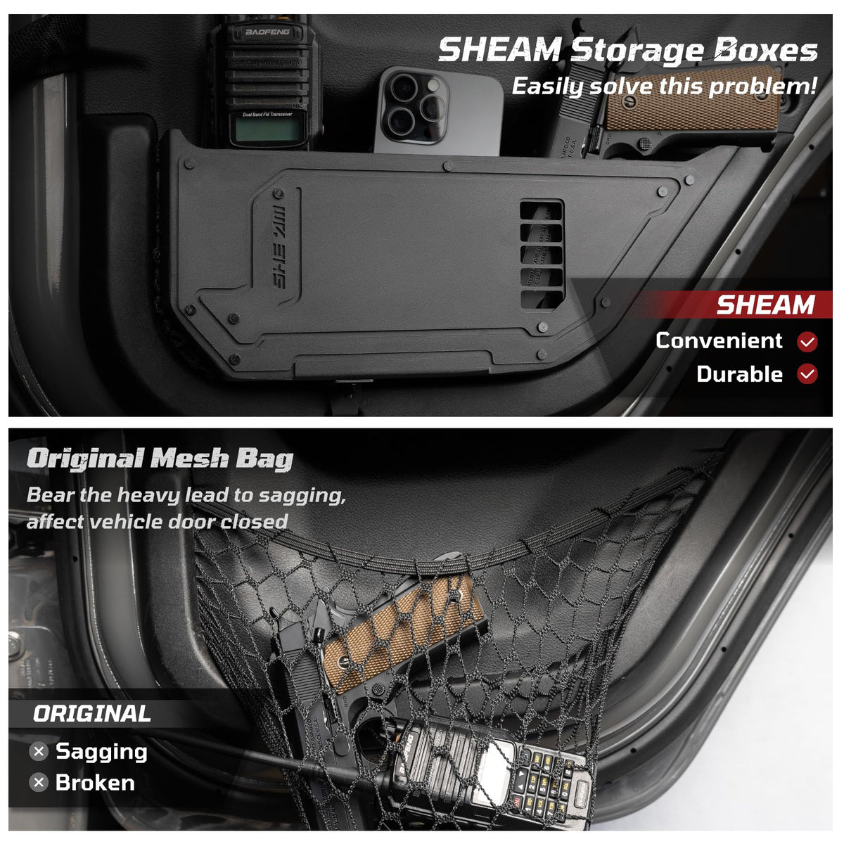 SHEAM Metal Rear Door Pocket Storage Box Compatible with 2018-2023 Jeep Wrangler JL 4XE JLU Rubicon Sport Sahara Gladiator JT, D