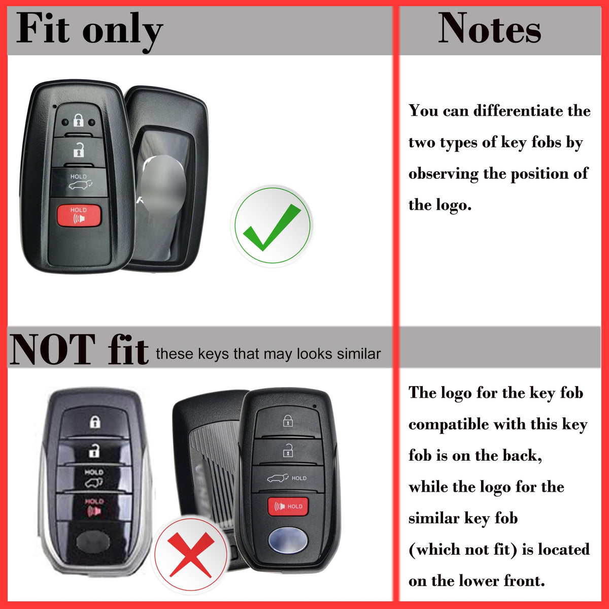 The key fobs are very expensive to replace. This product offers a simple solution to protect, distinguish, and prevent broken & scratched up key fobs. Fit like a glove, Great protecting the fob case and all buttons, never fade,silicone is very durable, you can use it for years. super easy install,10 seconds to slide it on,reduce push the button by accident,not interfere with the signal. This key cover compatible with the following car models: Fits Models: (Please refer to the appearance of the key picture) : 2020-2024 Highlander 2019-2024 RAV4 XLE 2019-2024 RAV4 XSE 2020-2024 RAV4 TRD 2019-2024 RAV4 Limited (Note : No fit Rav4 Prime) 2019-2024 Camry XLE 2020-2024 Camry XSE 2020-2024 Camry LE 2022-2024 Camry SE 2019-2024 Corolla XSE(Note : No fitCorolla Cross) 2020-2024 Corolla XLE 2021-2022 Corolla LE 2019-2024 Avalon Limited 2019-2024 Avalon XSE 2019-2024 Avalon XLE 2019-2024 Avalon Touring 2020-2024 Avalon TRD 2020-2024 Avalon AWD 2017-2024 C-HR 2016-2022 Prius 2016-2022 Prius Prime 2018-2024 86 / GT86 2021-2024 Prado 2022-2024 4Runner