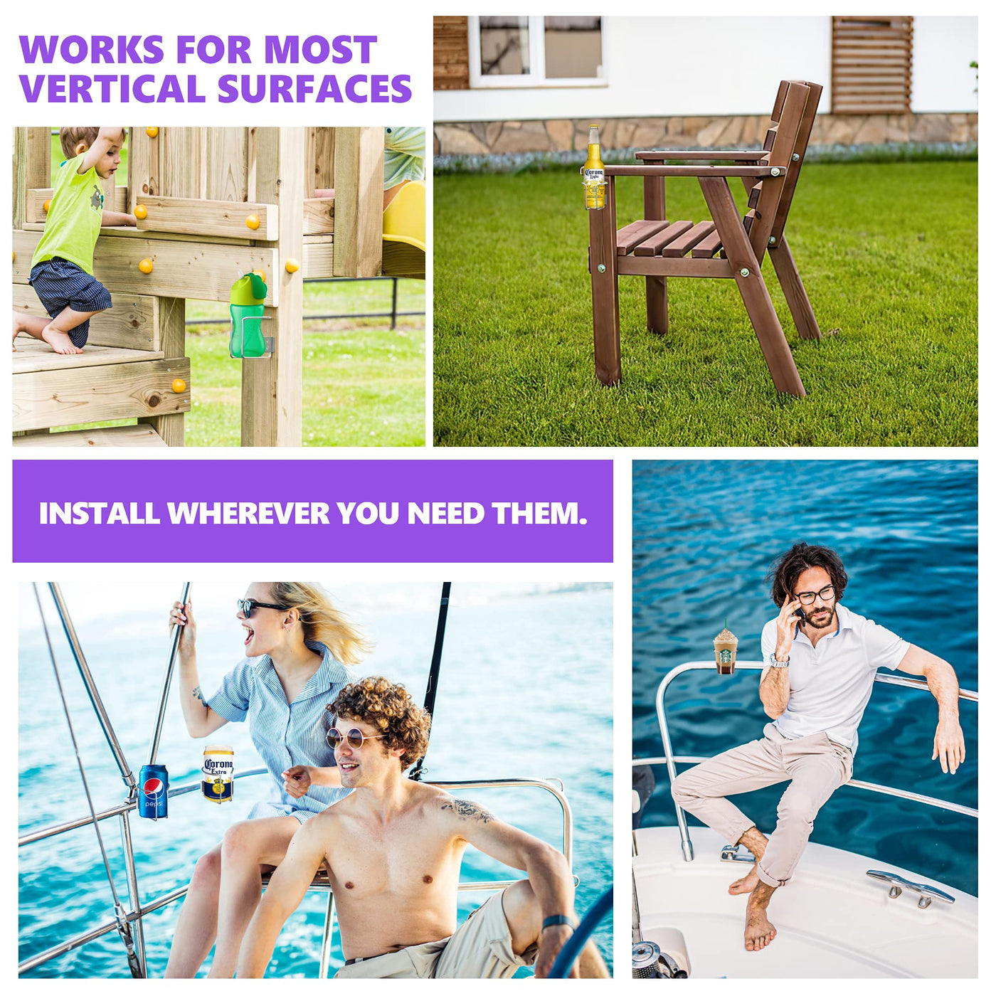 Skywin Wall Mounted Cup Holder - 2 Pack Boat Cup Holder For Yacht, Truck, Car And Rv Installs On Walls And Railings - Wall Rv Cup Holder Fits Drink Cans, Bottles And Cups (Screw Mount)