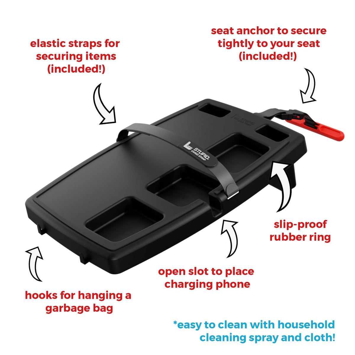 Stupid Car Tray - Classic Car Tray - Ultimate Car Organizer & Mobile Office - Includes 2 Elastic Straps - Quick-Release Seat Anc