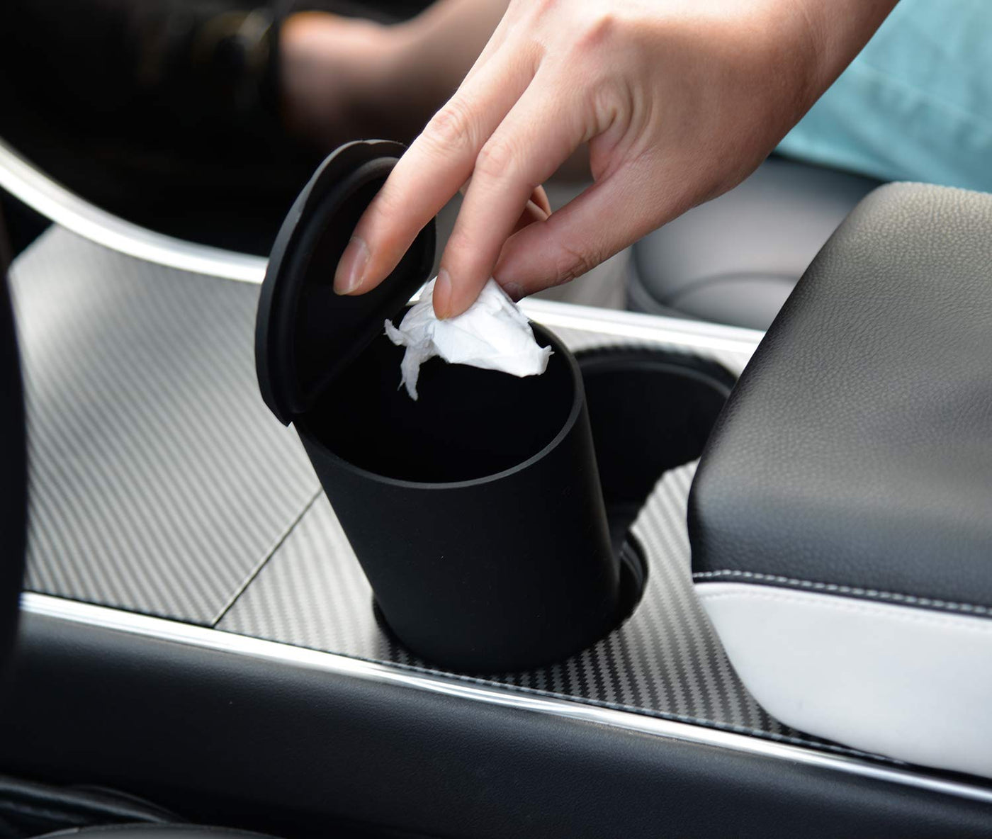 Thinsgo Car Silicone Trash Can With Lid Car Cup Holder Trash Bin Auto Vehicle Car Garbage Can Bin Use In Auto Home Office (Black)