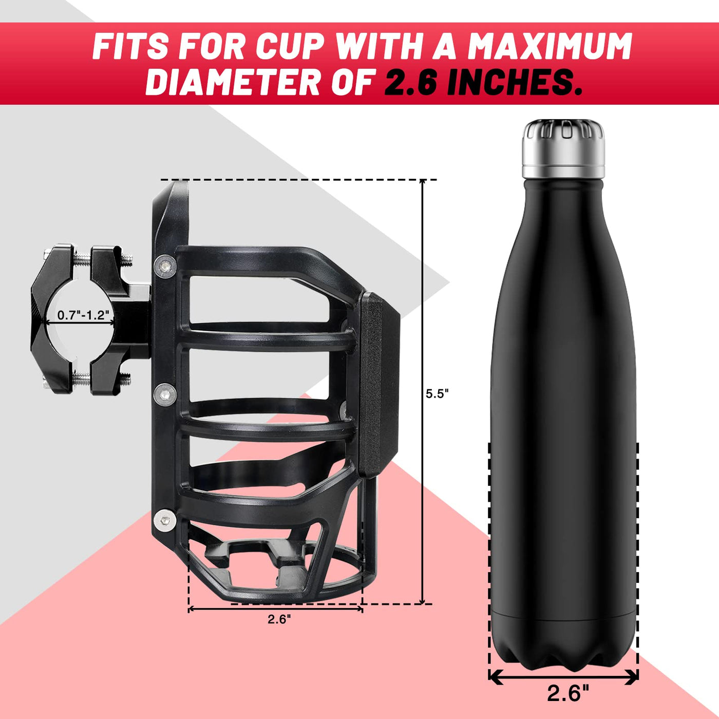 Tongze Bike Cup Holder Aluminum Alloy Motorcycle Cup Holder with Stretchy Plastic Shell Stainless Steel Screws Motorcycle, Bicyc