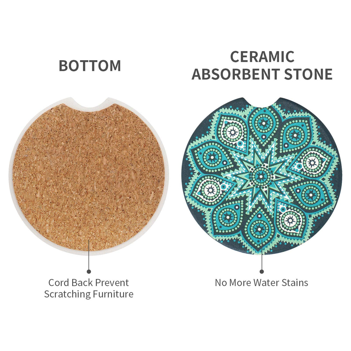 Vaincre Car Cup Holder Coasters Fit Drink Holders In Most Cars, Trucks, Vans And Suv'S. They Feature One Convenient Finger Notches For Inserting And Removing From Cup Holders. The Absorbent Stone Car Coasters Measure 2.56'' In Diameter And Are Sold As A Pack Of Four. The Decorative Vaincre Car Coasters Make A Nice Car Accessory. Our Coasters Are Made Of Ceramic Absorbent Material, Sturdy And Non-Scratchy Cork Base, Beautiful Mandala Design, Car Coasters Are Practical Accessories For Your Car. Enjoy The Ride With This Handy Car Cup Holder Coaster That Will Add A Touch Of Style To Your Car'S Interior While Absorbing Excess Moisture To Keep Your Cup Holders Clean And Dry. If You Like To Drink Coke, Water Or Coffee While Driving, The Liquids Dripping Out Of The Cup Will Easily Cause The Cup Holder To Be Dirty And Smelly If You Don'T Clean The Cupholder In Time. These Absorbent Coasters Will Solve Your Problem, Keep Your Car Cupholder Clean And Dry. Just Pop Them Into The Bottom Of Your Car'S Cup Holders It Will Catch The Spills And Drips For You. Be Careful, Coffee, Tea Or Juice May Stain These Coasters. We Recommend You To Wash The Coaster With Water Immediately.Hot Tips: Please Measure Your Car Cup Holder'S Diameter Before Place An Order, Vehicle Cup Holders May Different In Size.