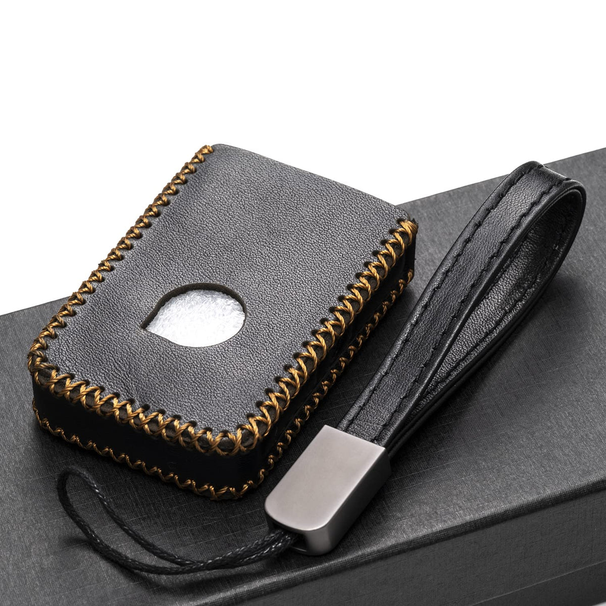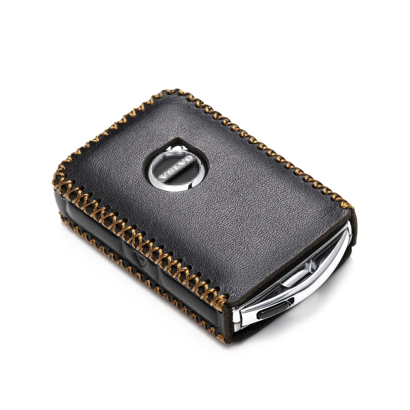 Q: What material is the key fob case made of?A: The key fob case is made from 100% genuine premium cowhide leather, ensuring durability and a stylish appearance while providing full protection for your key.