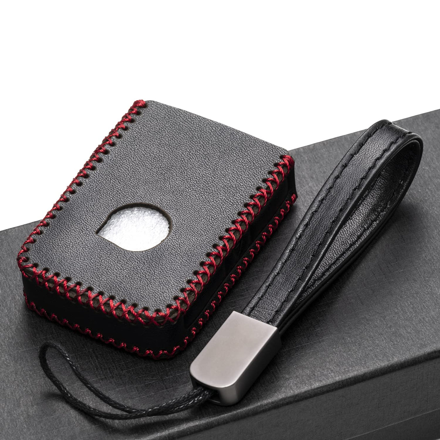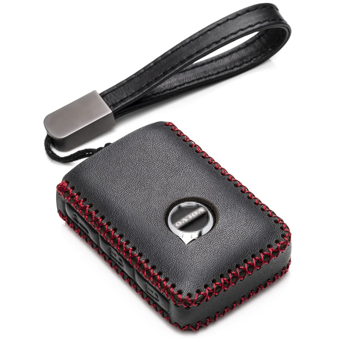 Vitodeco Genuine Leather Smart Key Fob Case Compatible with Volvo XC40, XC60, XC90, S90, S60, V60, V90 2019-2024 (4-Button, Black/Red)